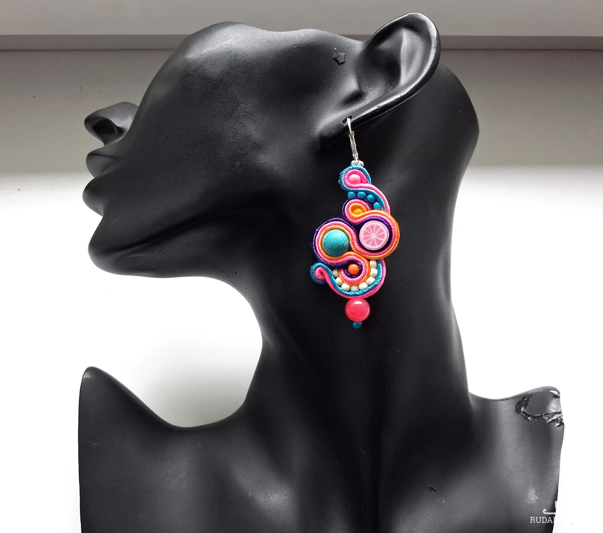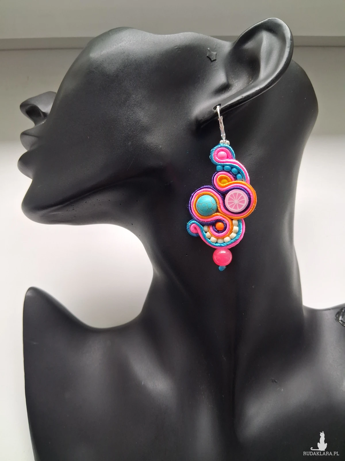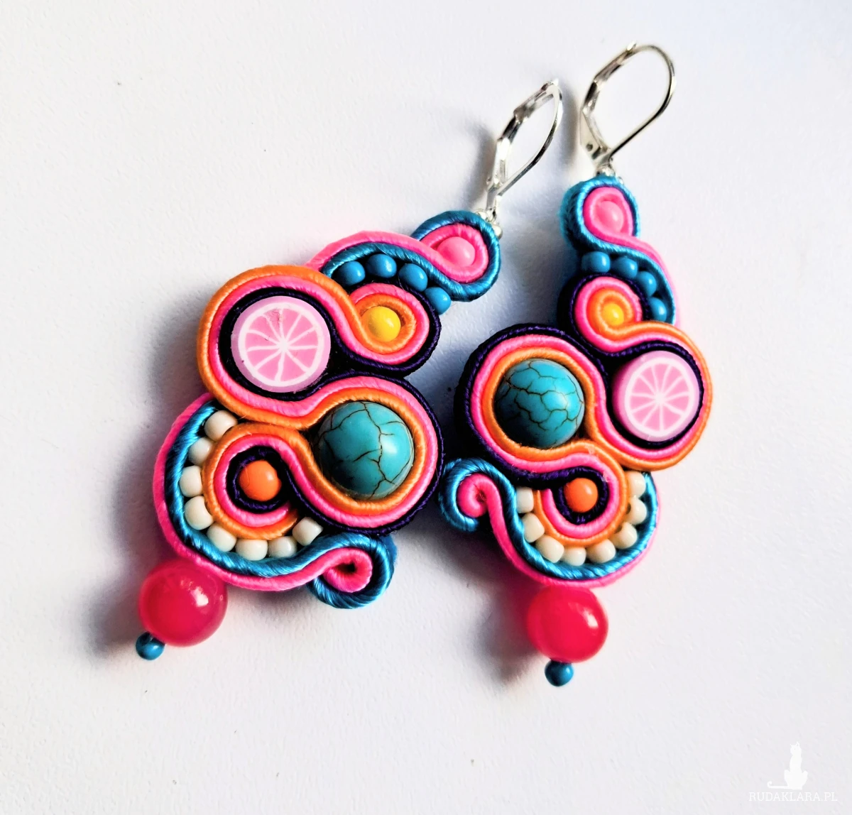 Kolczyki sutaszowe ręcznie haftowane.