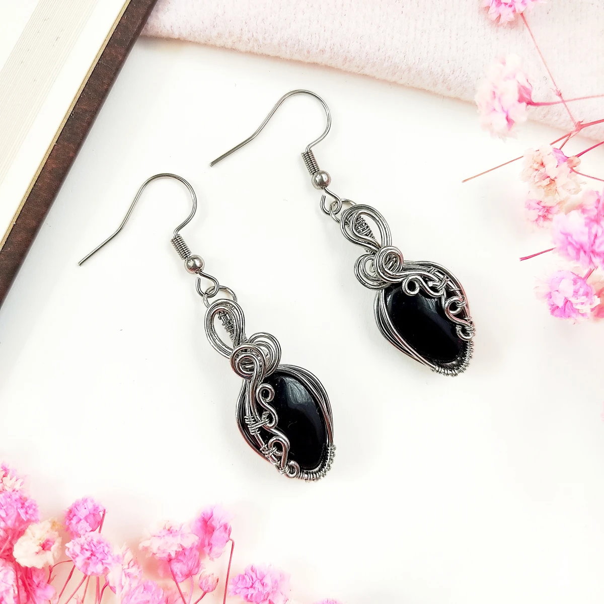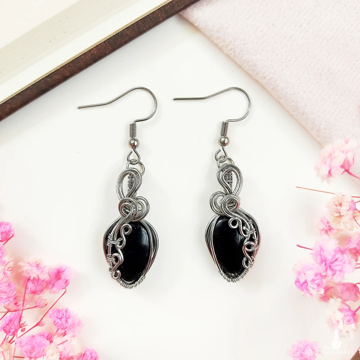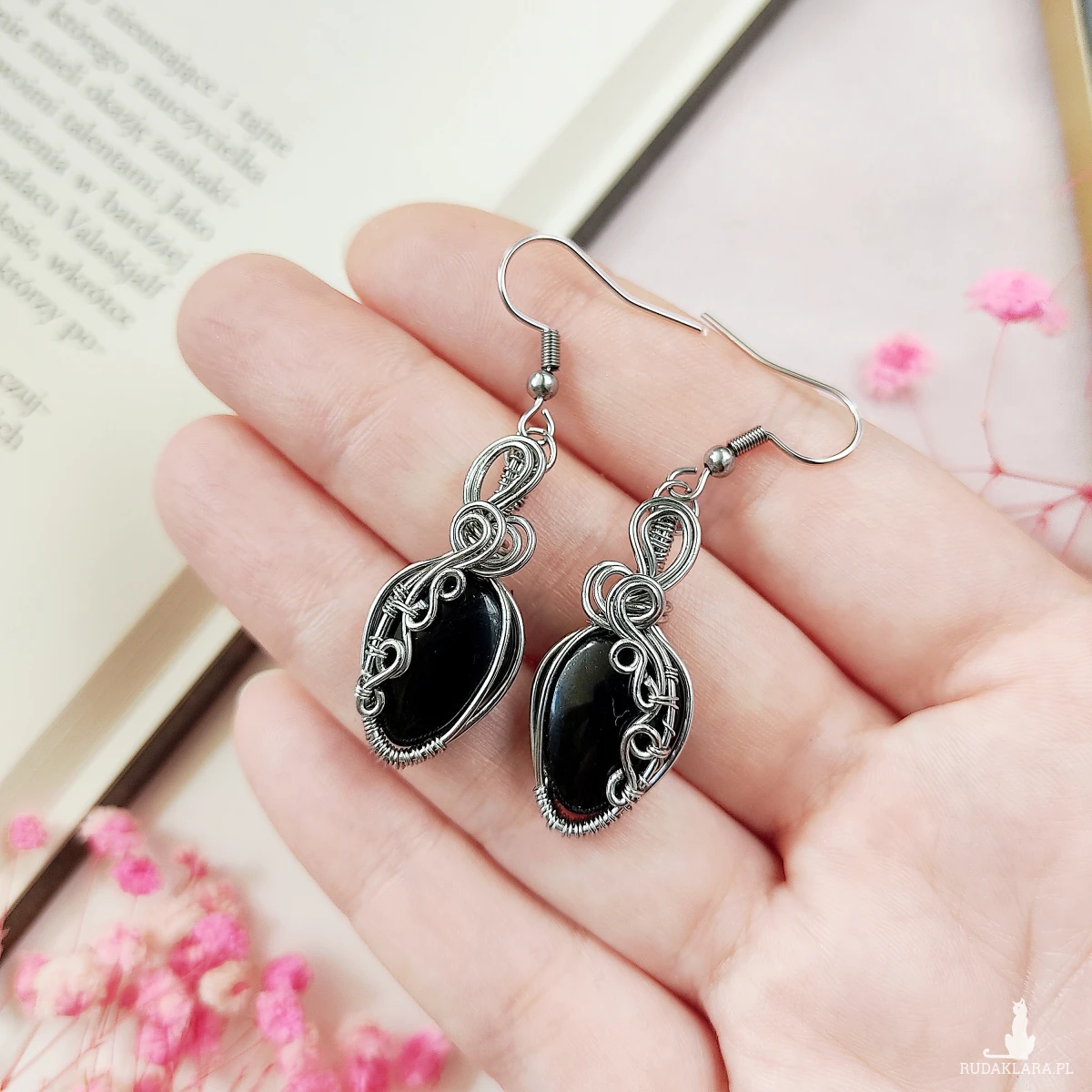 Kolczyki z onyksami wykonane metodą wire wrapping to unikalna biżuteria artystyczna, która łączy w sobie elegancję, trwałość i ręczne rzemiosło. Onyks, znany ze swojej głębokiej, czarnej barwy i symboliki siły, jest kamieniem, który od wieków przyciąga uwagę miłośników wyjątkowych dodatków. W tych kolczykach został oprawiony w misternie pleciony drut ze stali chirurgicznej, co nadaje im niepowtarzalny charakter i sprawia, że są trwałe oraz odporne na działanie czasu.