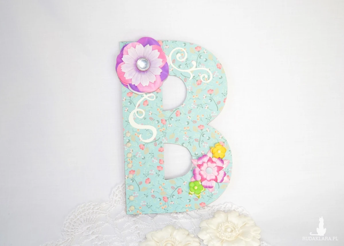 Litera ze sklejki ozdobiona z użyciem różnych technik. Piękna ozdoba dziecięcego pokoju lub ciekawy pomysł na prezent