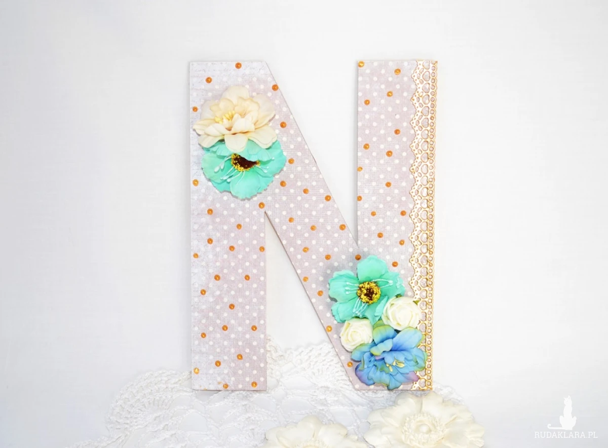 Litera ze sklejki ozdobiona z użyciem różnych technik. Piękna ozdoba dziecięcego pokoju lub ciekawy pomysł na prezent