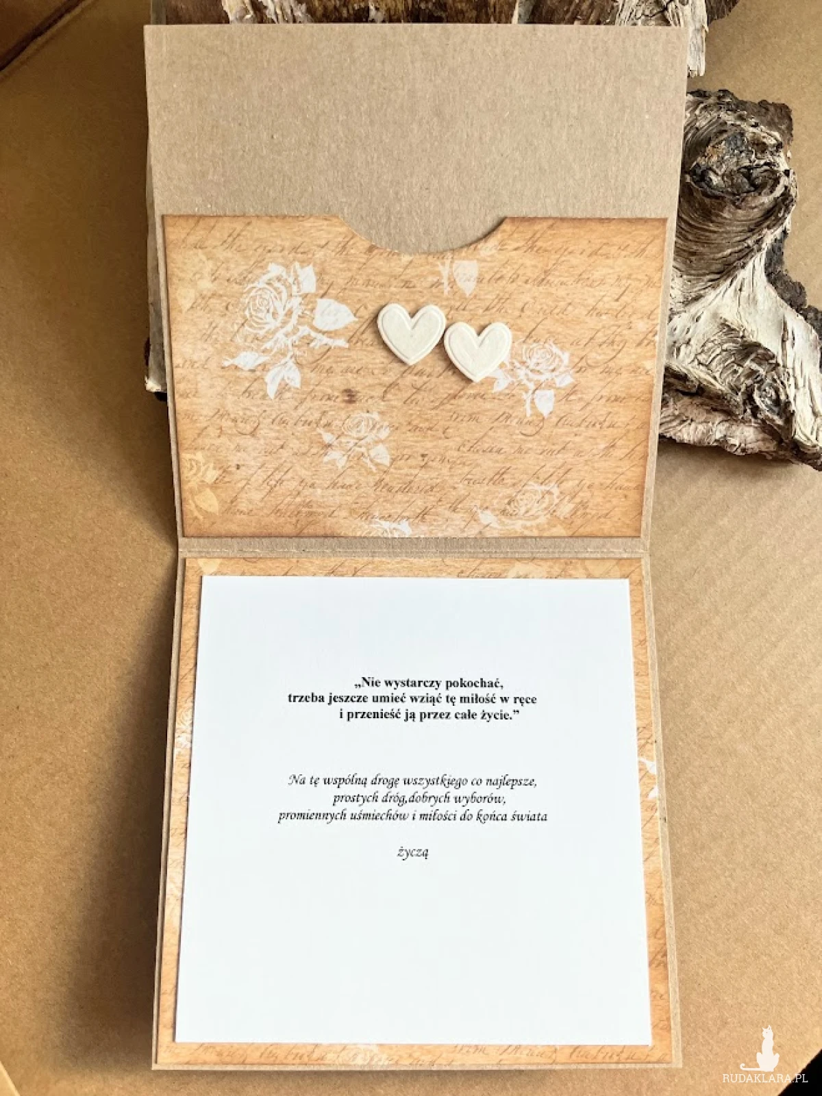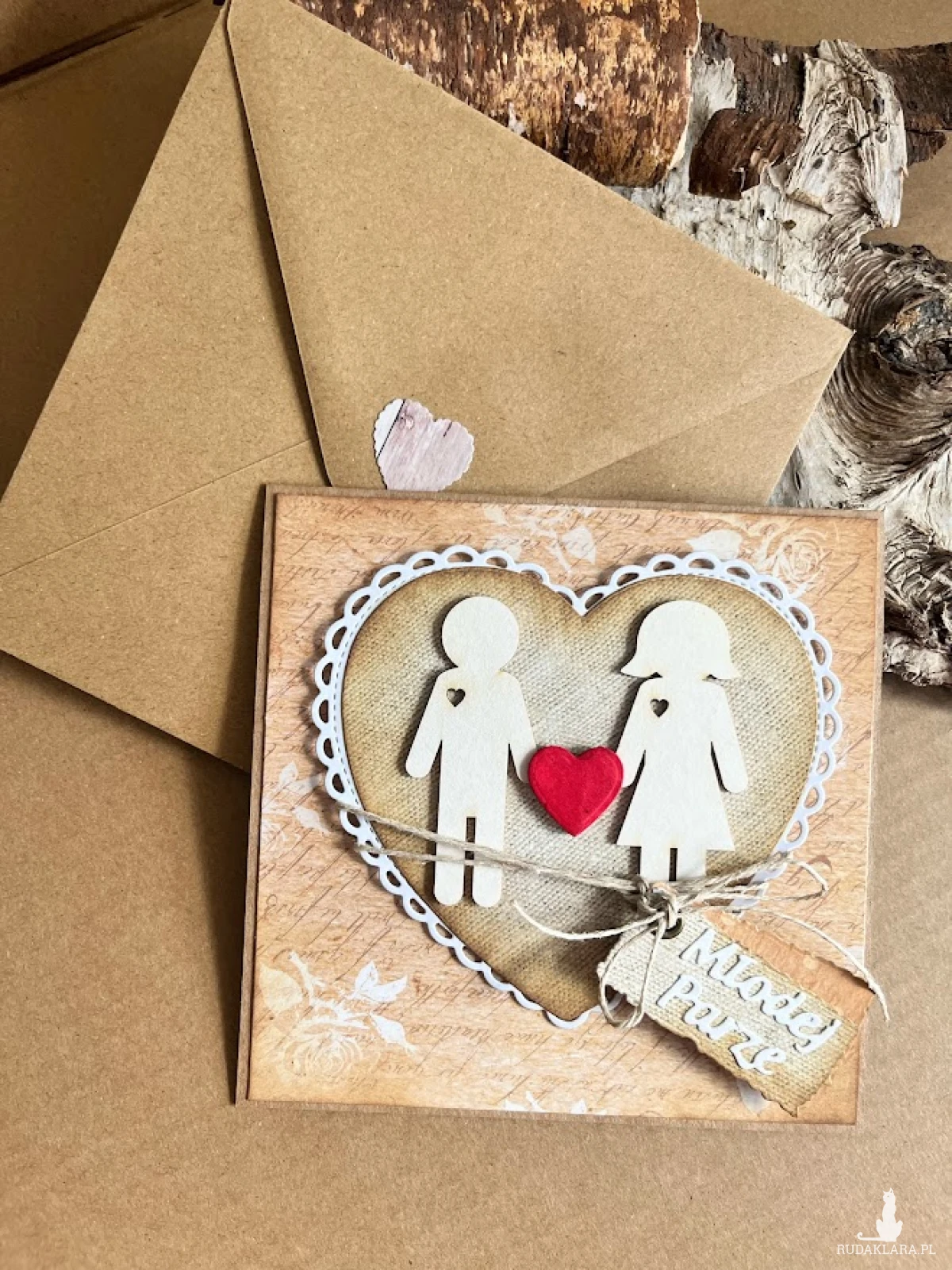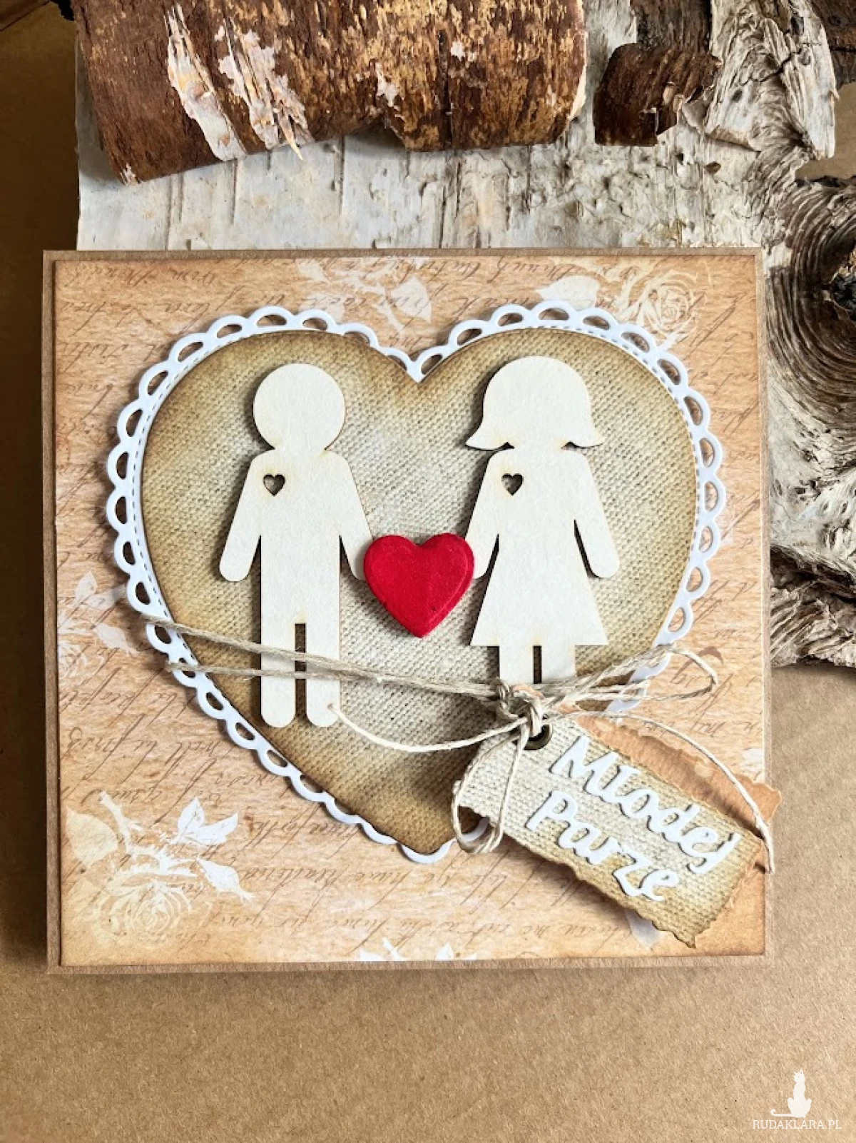 Kartka ślubna w stylu eco z piktogramową parą młodą. Kartka wykonana na bazie kraftowej o wym. 14x14cm . Wewnątrz kartki umieszczono kieszonkę na male co nieco oraz gotowe życzenia do wlasnoręcznego podpisu. Do kartki dolączono kraftową kopertę o wym 16x16 i sznurek do obwiązania . W tej postaci kartka do natychmiastowej wysylki. Jeżeli będzie mieć chęć podania imion młodej pary i imion składających życzenia to proszę podać to w uwagach podczas zamawiania