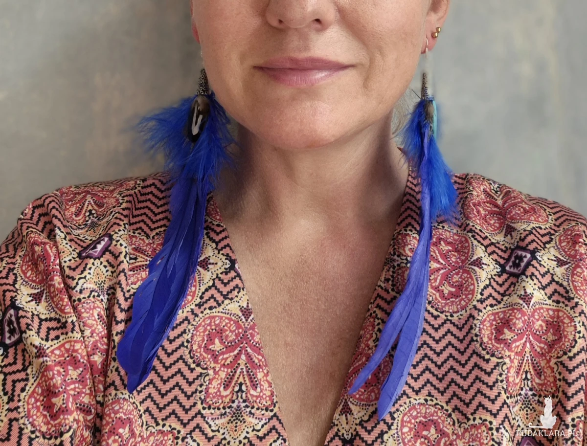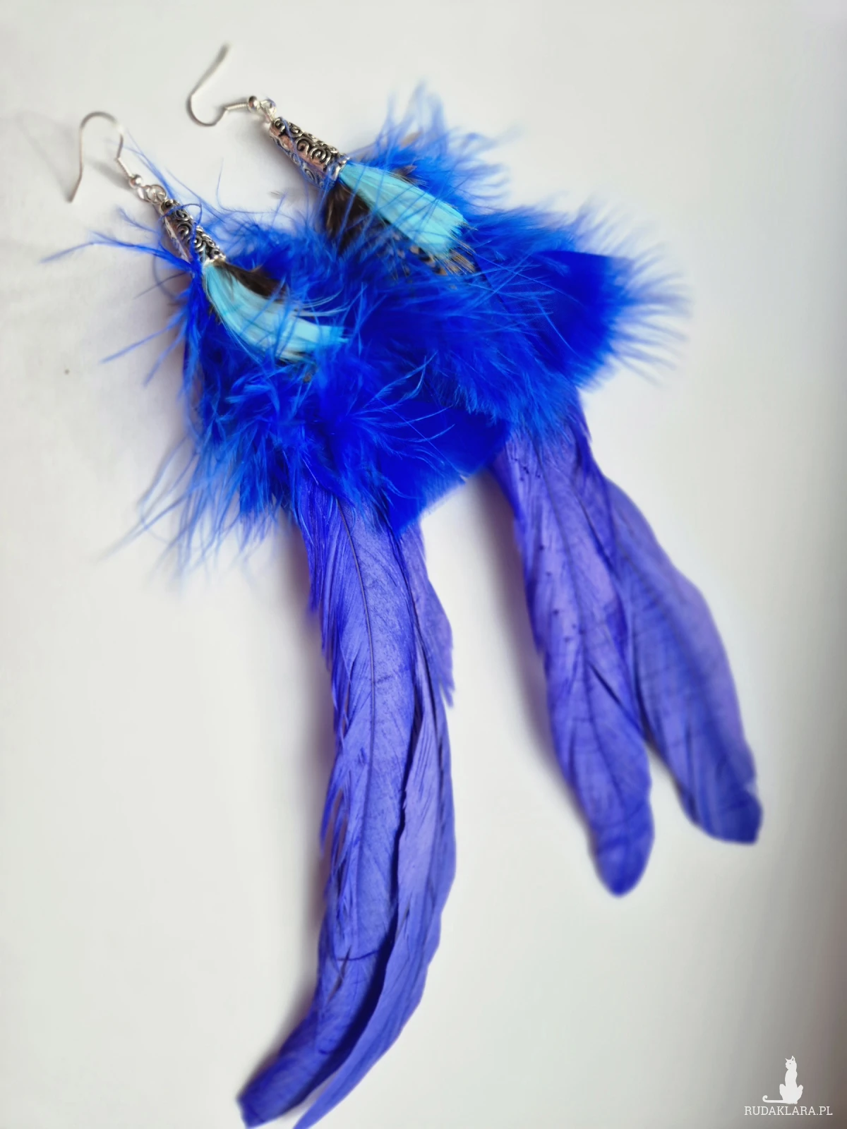 Kolczyki długie chabrowe pióra przepiękne leciutkie bardzo zwracają uwagę robione ręcznie