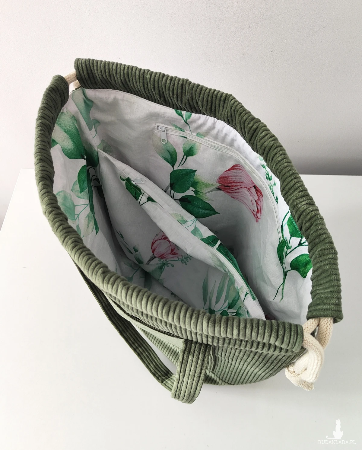 SummerBag F O R E S T-duża ciemnozielona torba sztruksowa