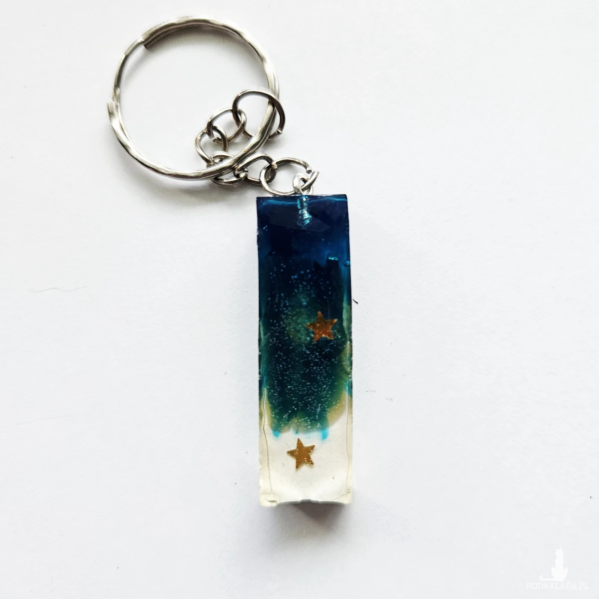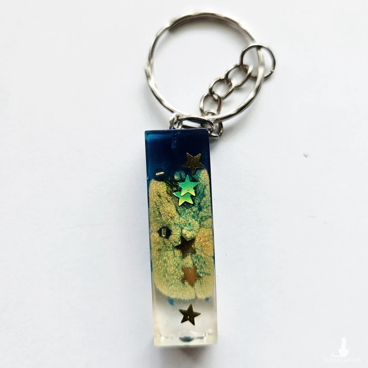 Brelok literka I galaxy niebieska ze złotem i gwiazdami
