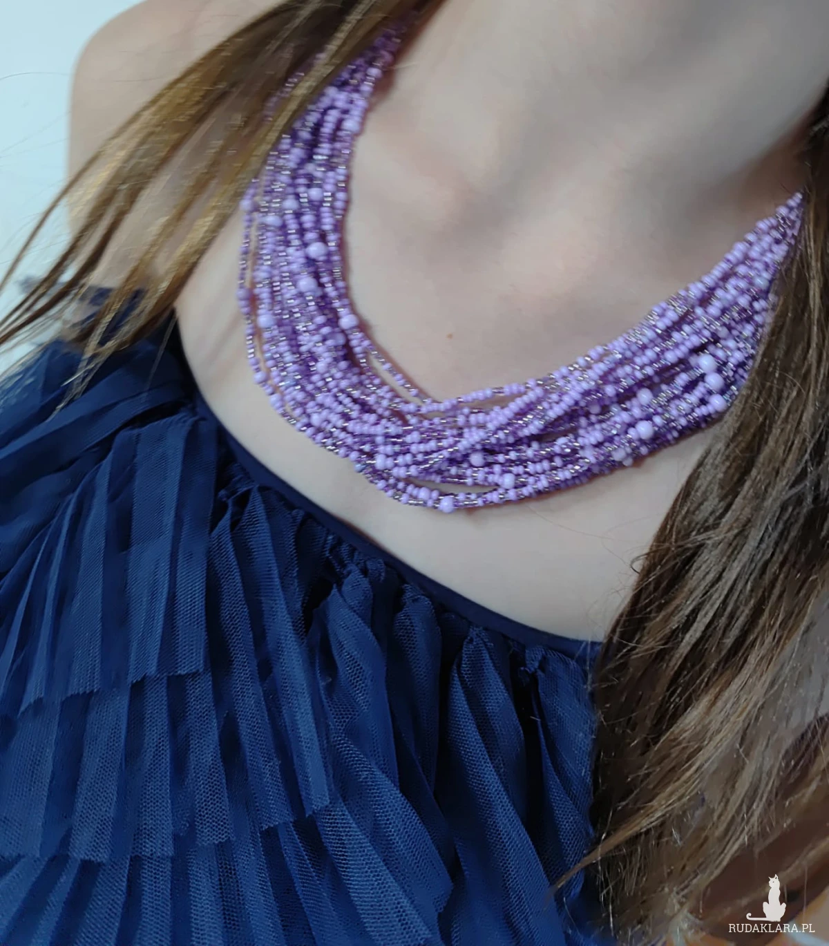 Naszyjnik Koralikowy Mix Fioletowy Lila