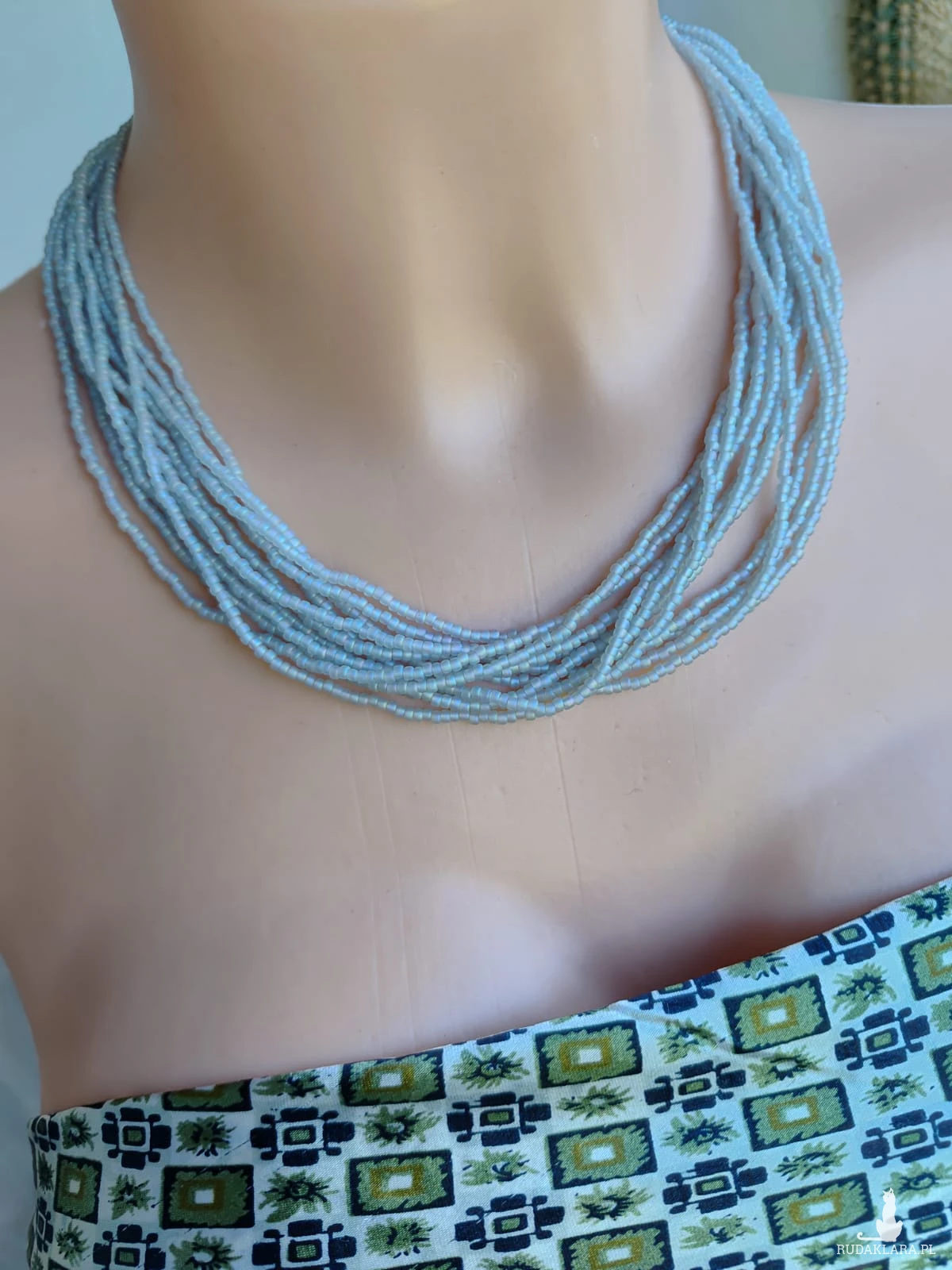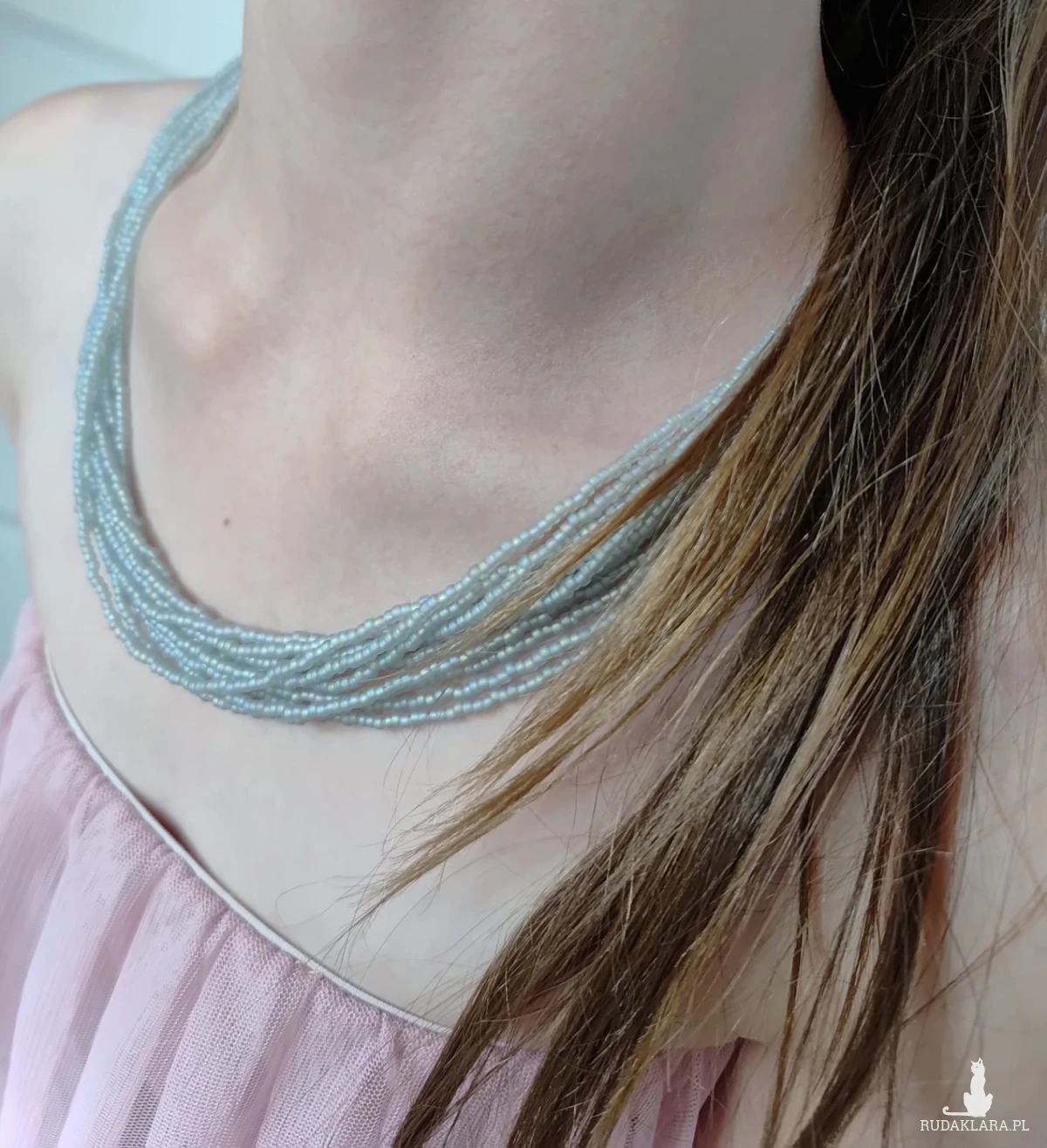 Naszyjnik Koraliki Japońskie Szare Drobne Krótki