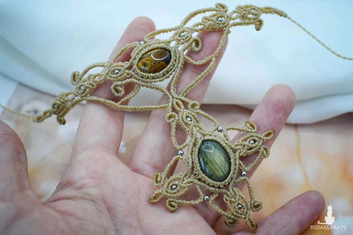 Sznurki boczne ok. 30x2 cm w tym zapięcie regulowane- makramowe