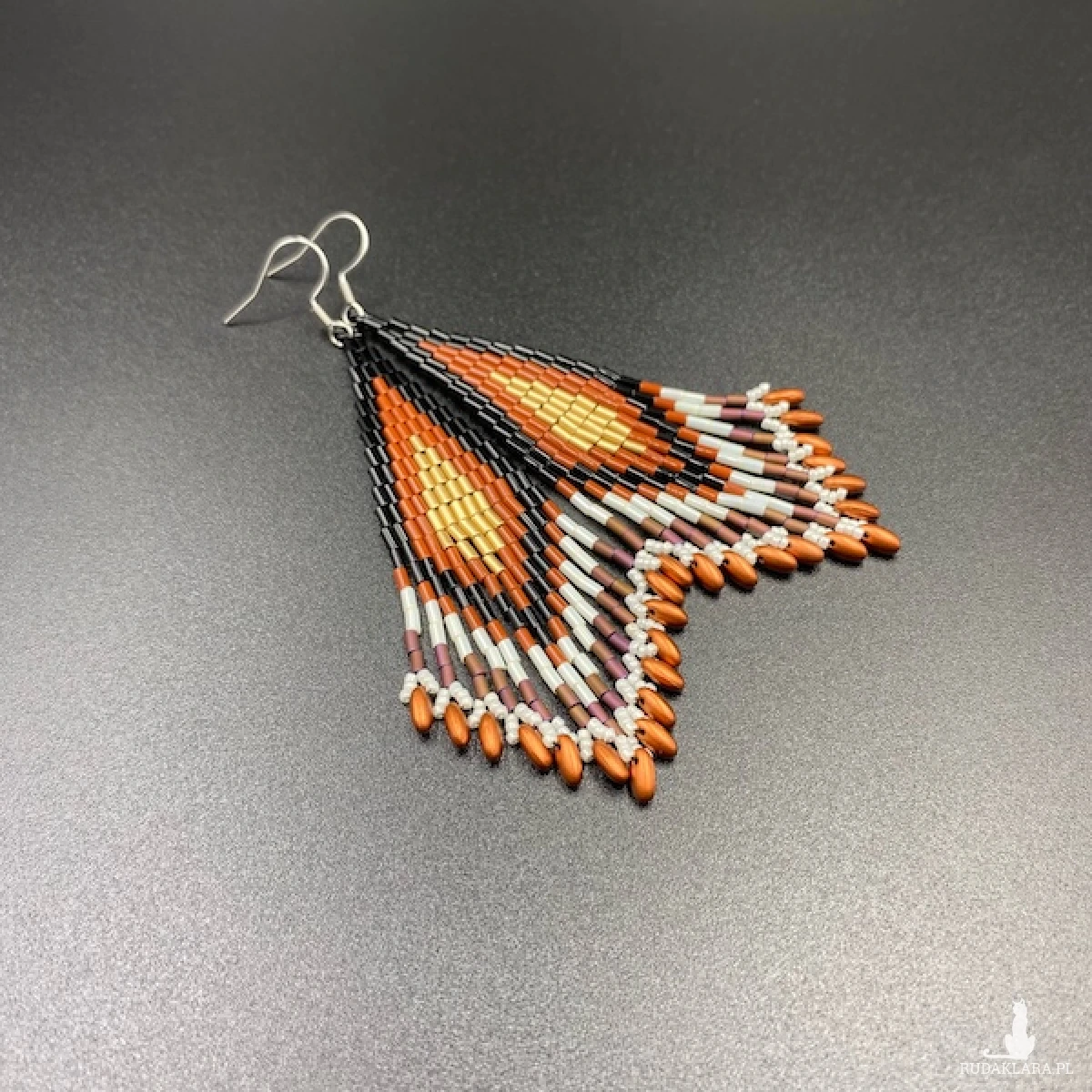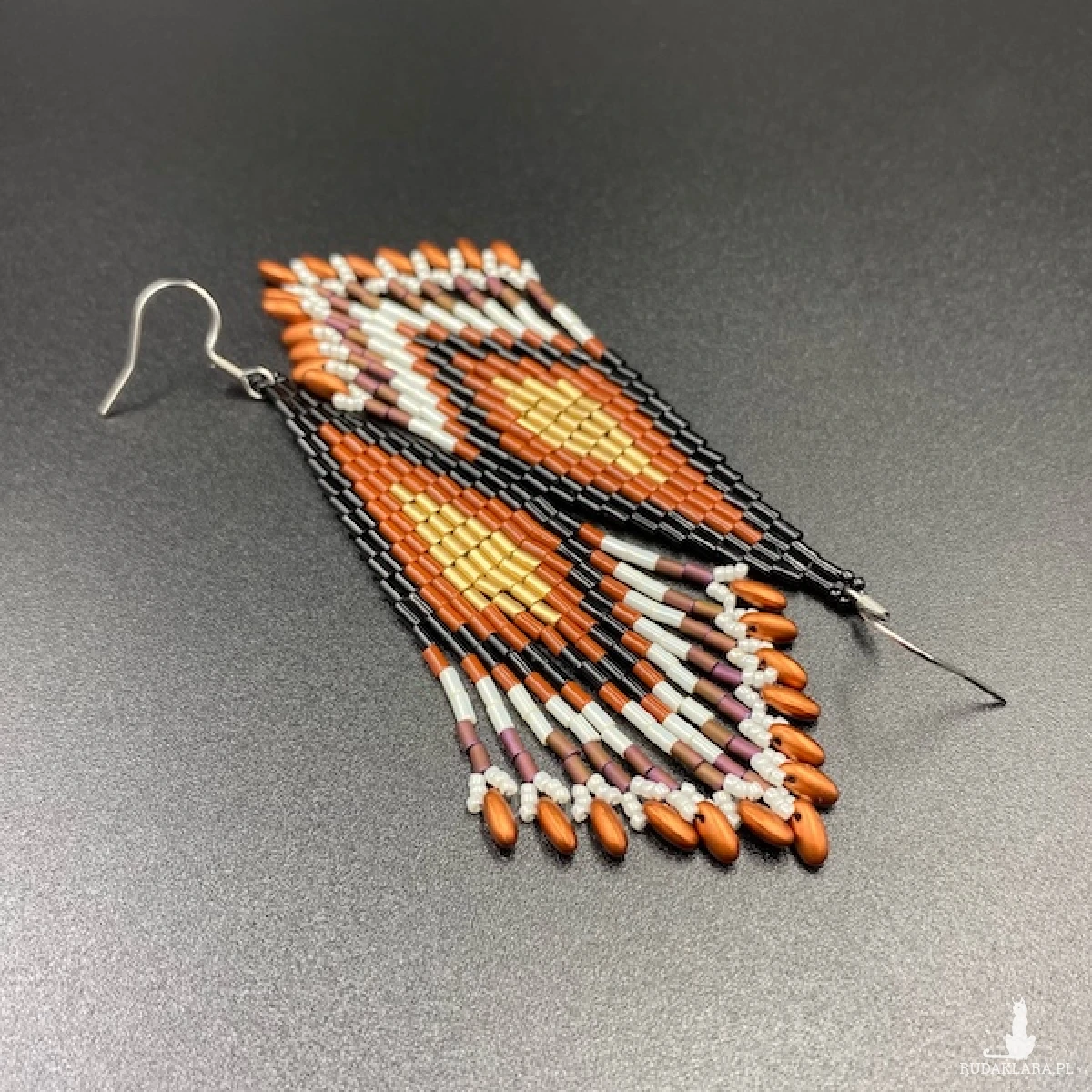 Etniczne kolczyki zostały w 100% utkane ręcznie z małych rurek i koralików Rizo. Każdą pracę wykonuję bardzo starannie.