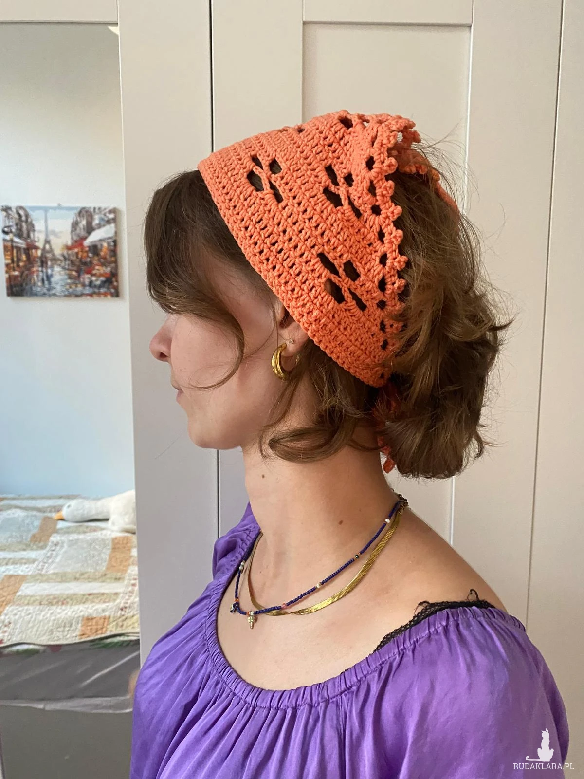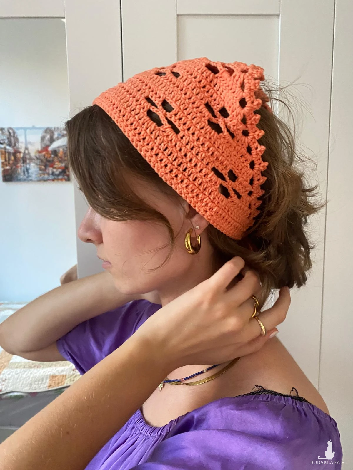 Piękna bandana w kolorze moreli. Ozdoba do włosów, dodaje uroku do letniej stylizacji.
