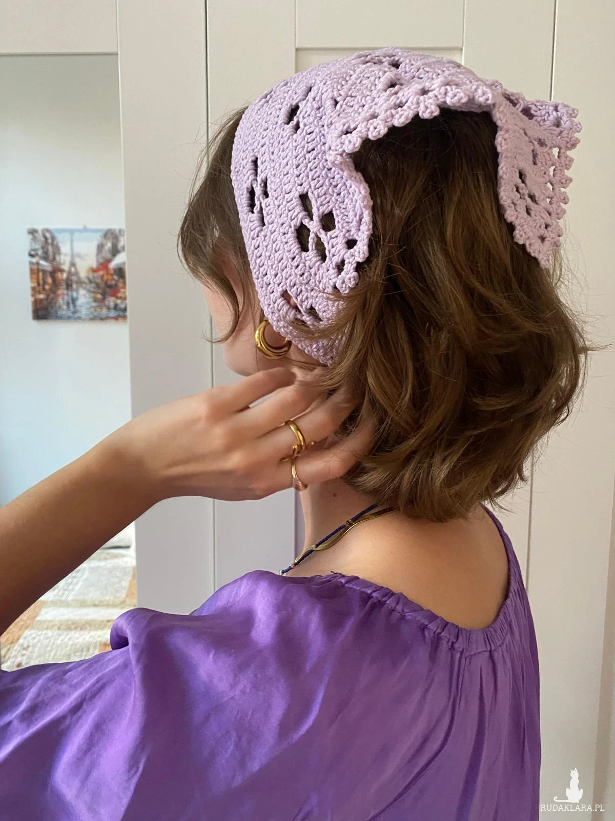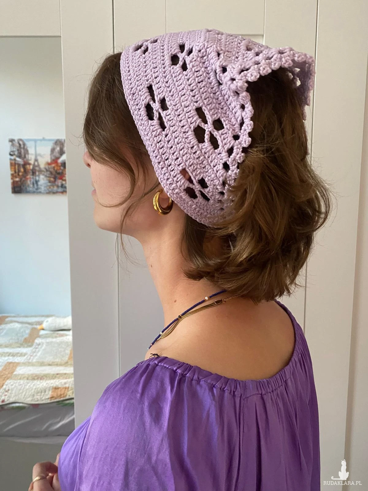 Piękna bandana w kolorze jasnym wrzosowym Ozdoba do włosów, dodaje uroku do letniej stylizacji.