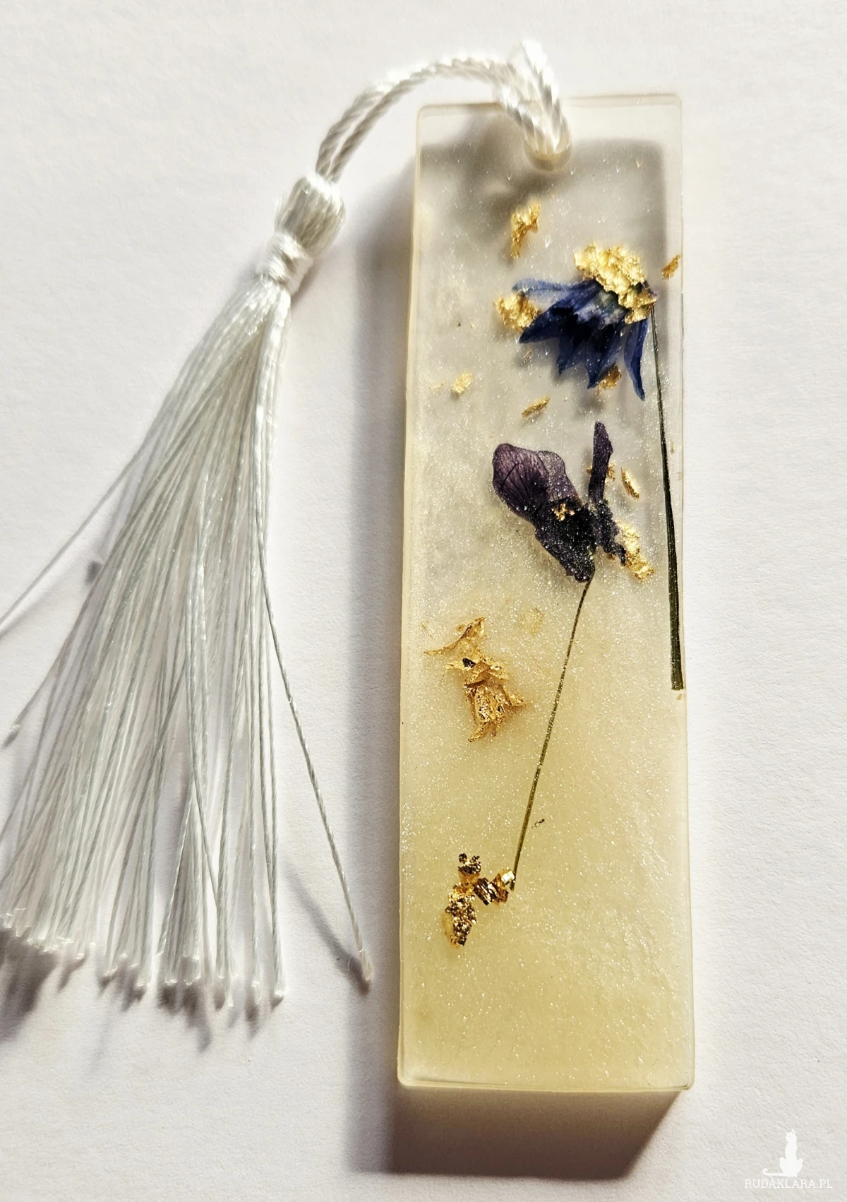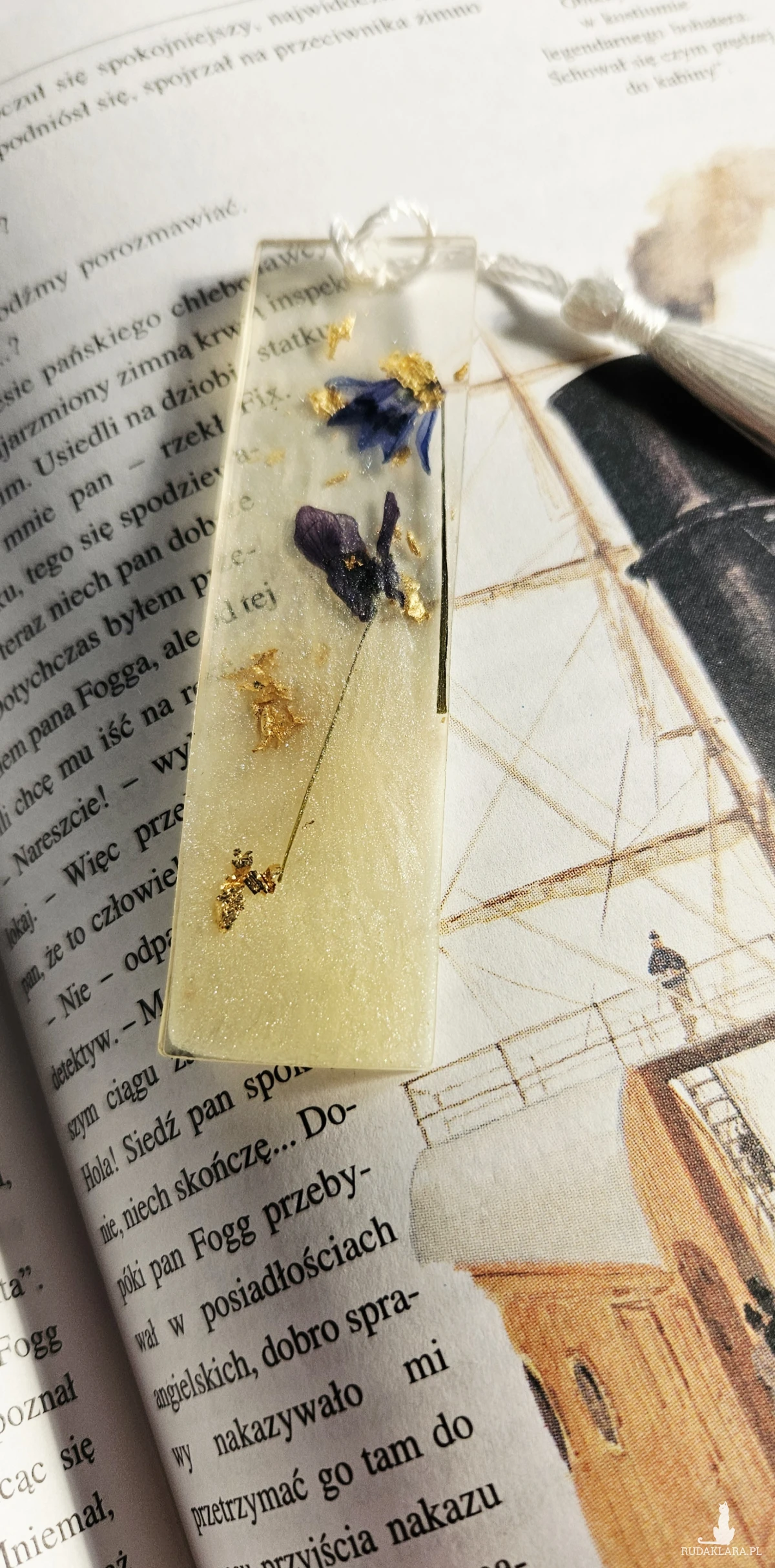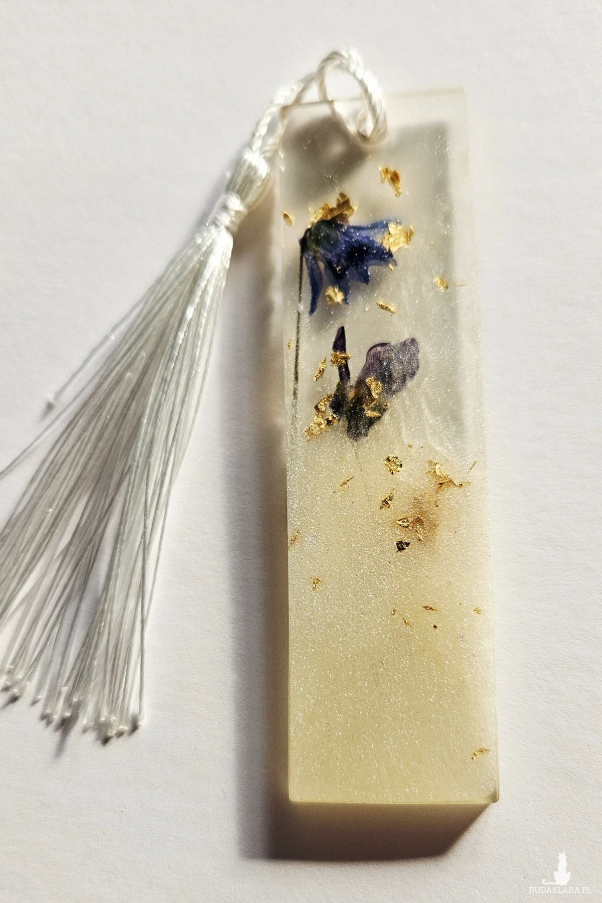 Zakładka z żywicy epoksydowej z fiołkiem i dzwonkiem złotem M25
