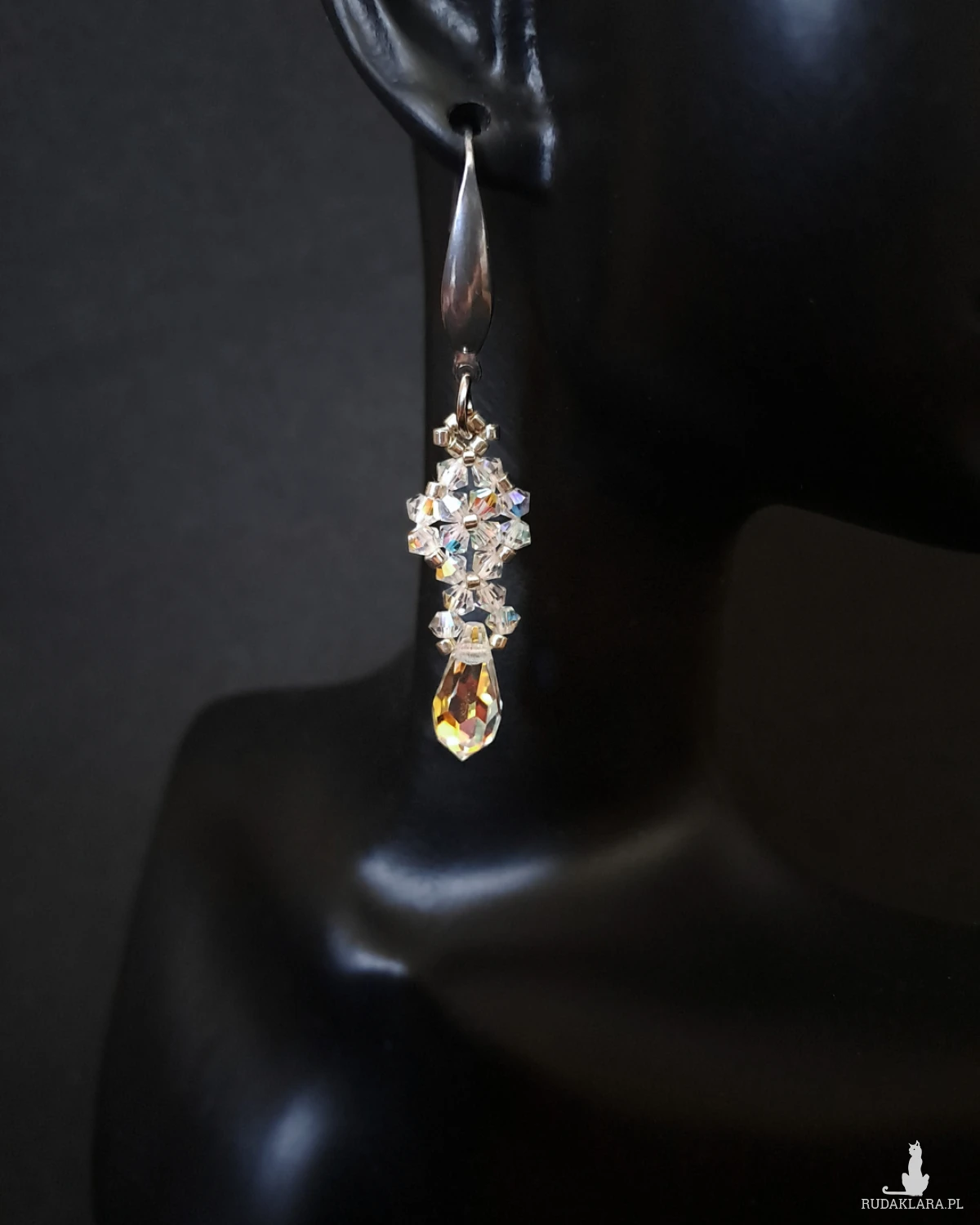 Blask kryształków Preciosa Crystal AB delikatnie odbija światło, a kształt łezki dodaje całości subtelnej miękkości.