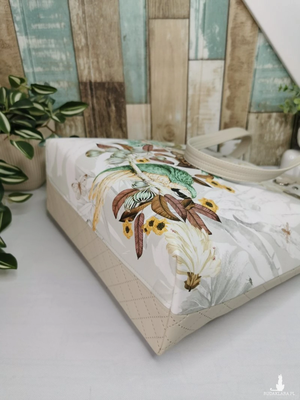 Torebka damska shopper bag torebka na ramię zamykana - ekoskóra ptaki 2
