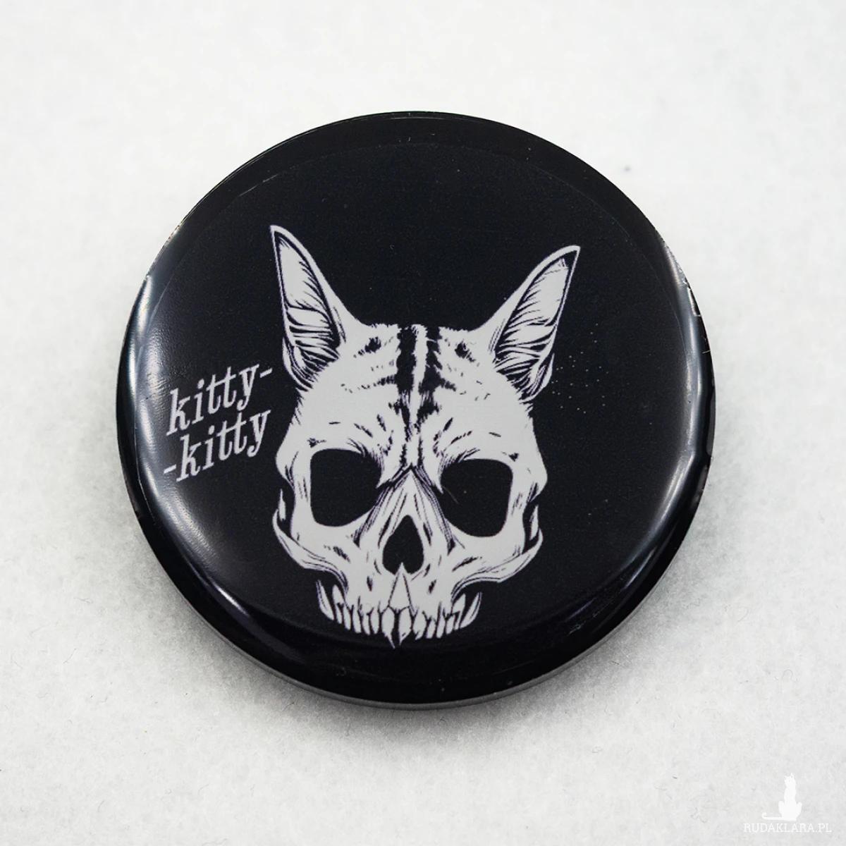 Oryginalna, ręcznie wykonana przypinka z czaszką kota. Zrobiona jest z żywicy epoksydowej i