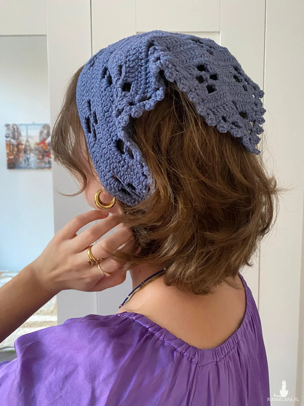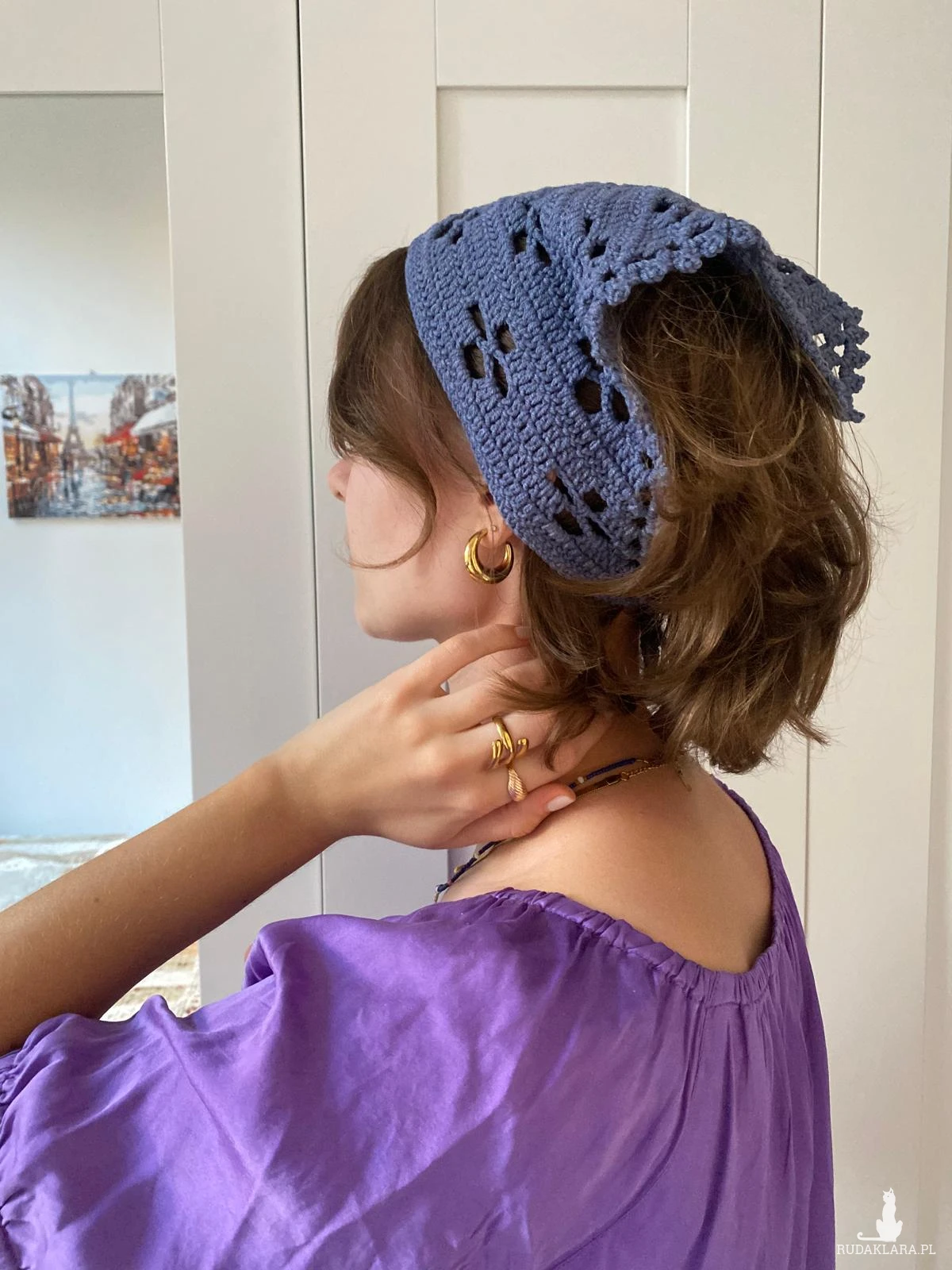 Piękna bandana w kolorze jeans. Ozdoba do włosów, dodaje uroku do letniej stylizacji.
