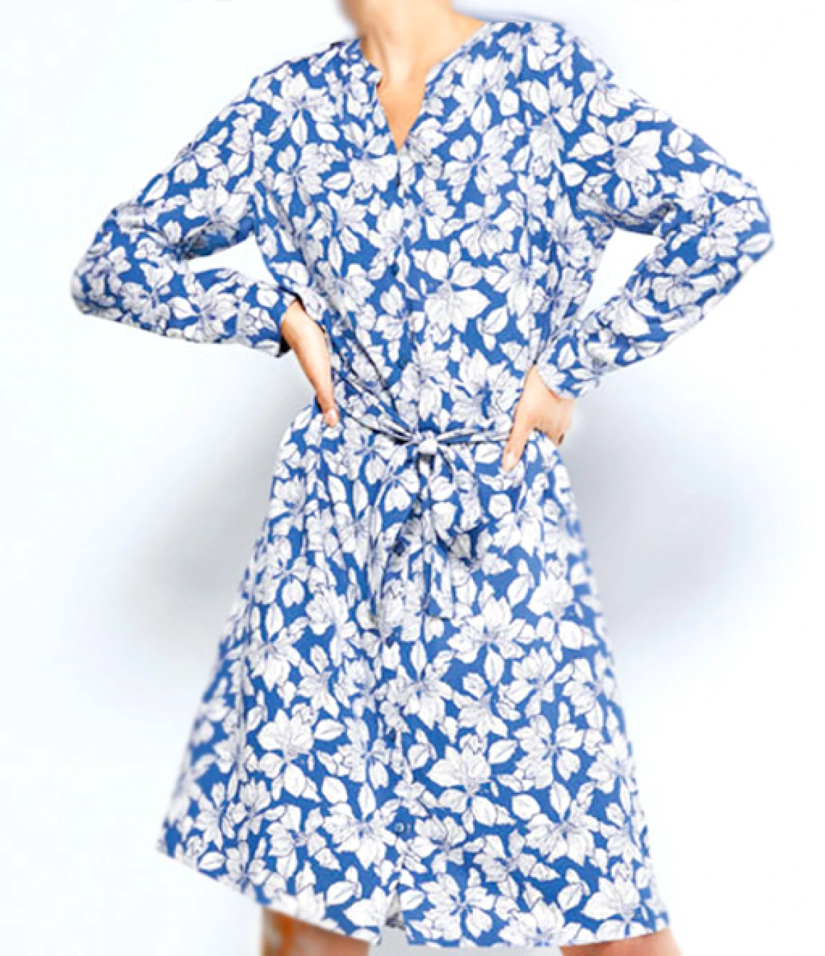 Nowa, przewiewna sukienka rozmiar 40. Sukienka jest zapinana na guziczki, długi rękaw. Wzór w kwiatki, kolory biały i niebieski (granatowy). Materiał: wiskoza 100%,, marka esmara. Ubranie można nosić także jako tunikę. Sukienka posiada pasek. Uniwersalny, lekki strój damski zarówno na różne okazje, jak i na co dzień. Wymiary: