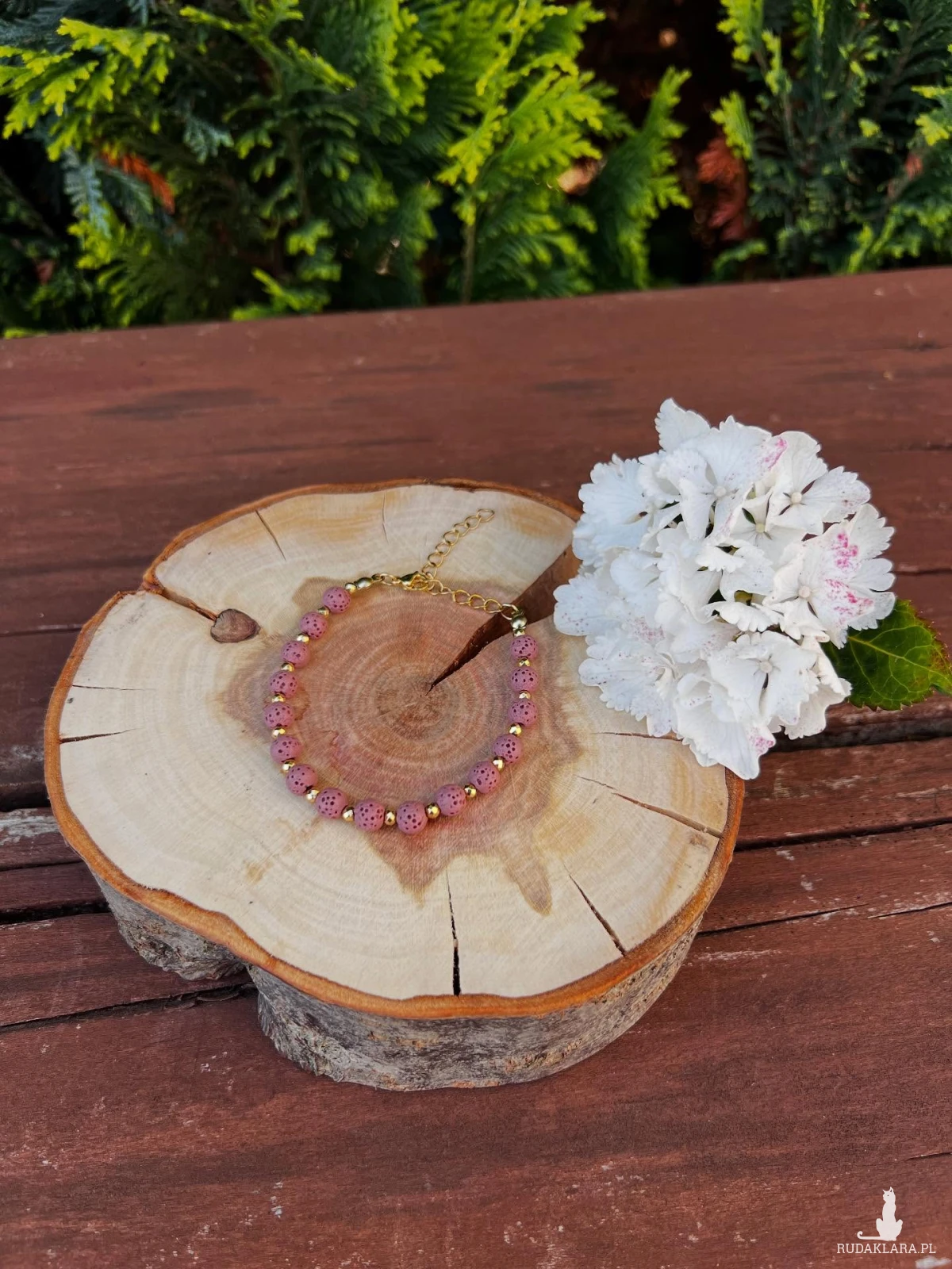Lawa wulkaniczna w kolorze zgaszonego różu - kulka gładka 6 mm