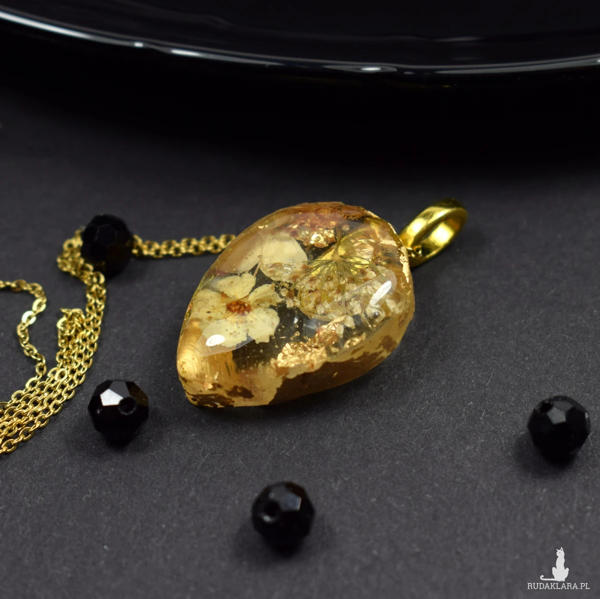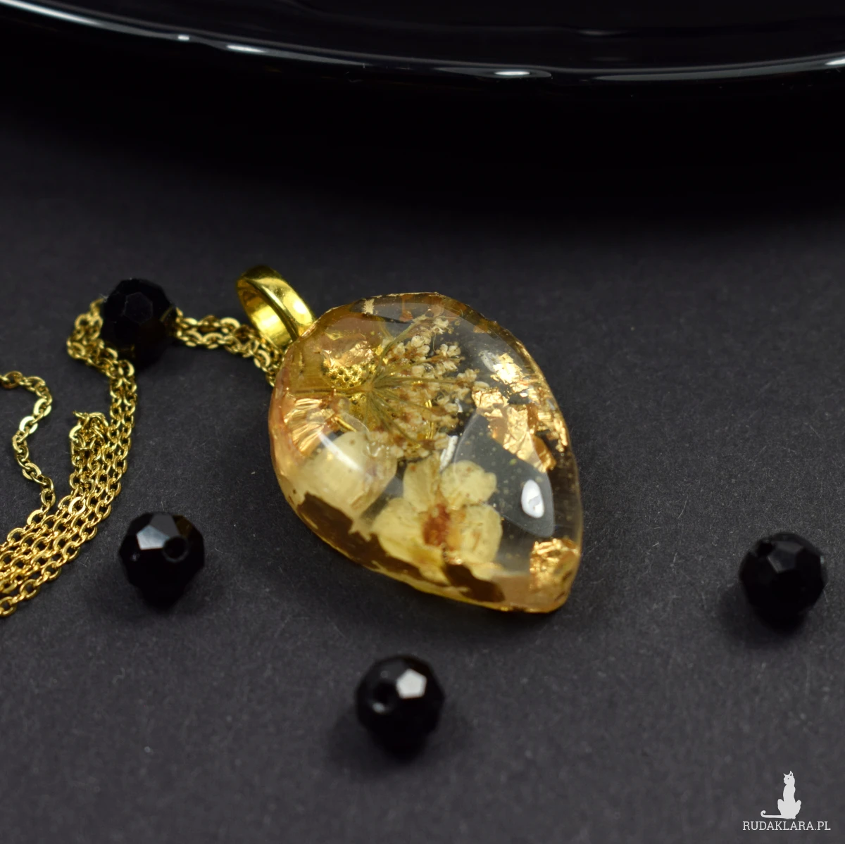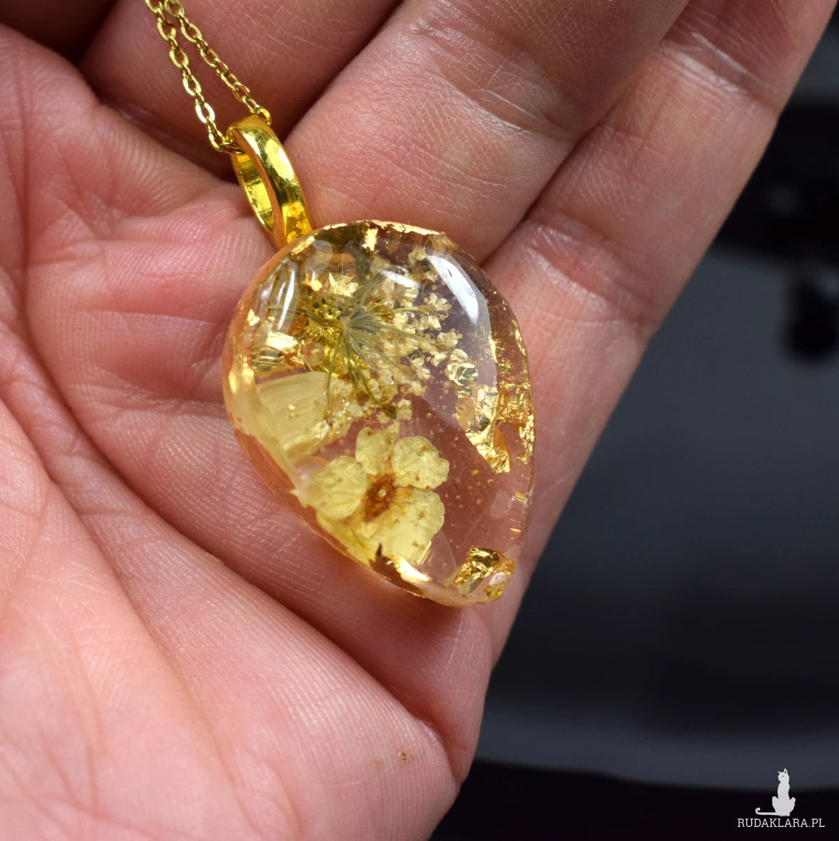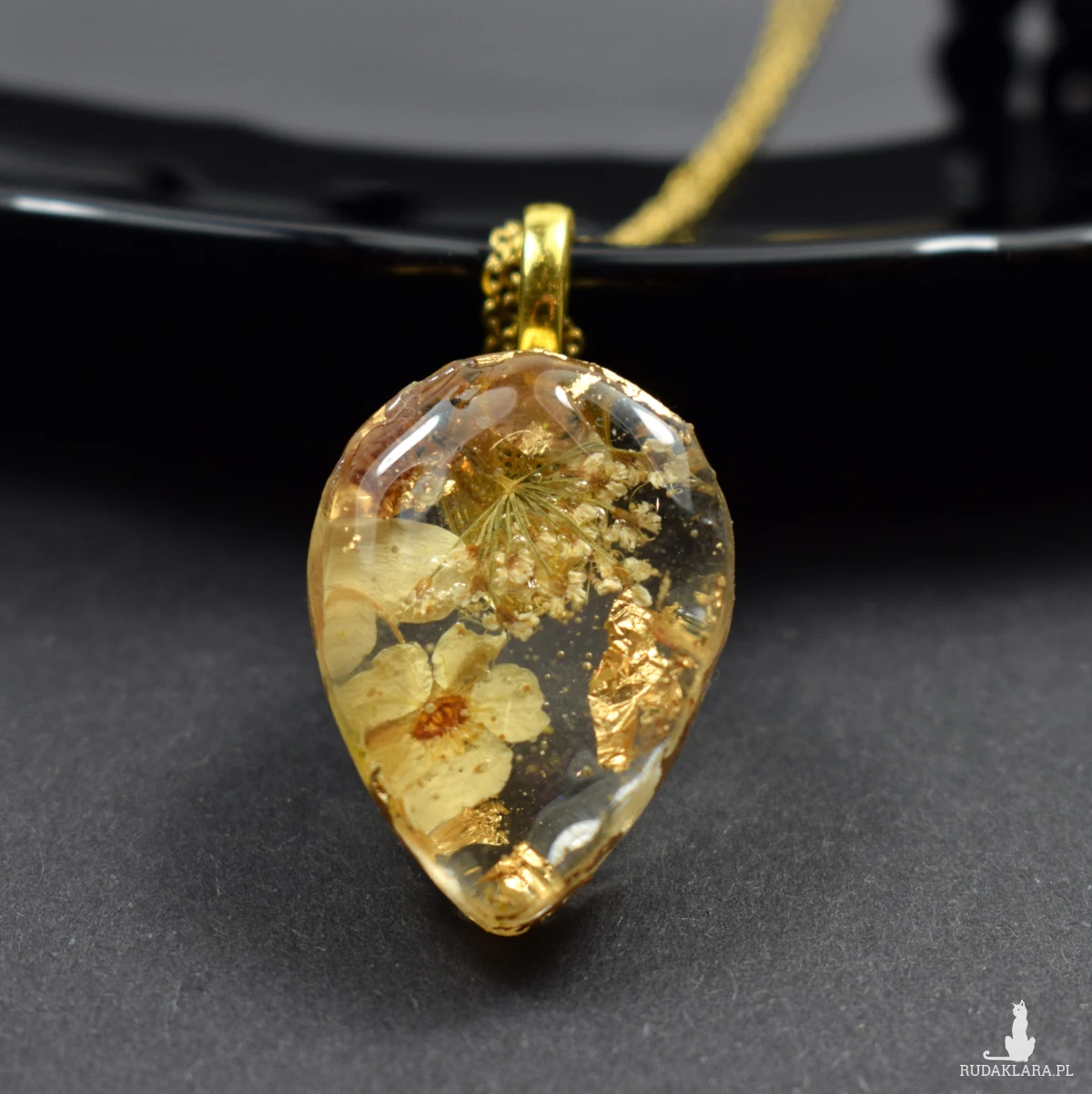 Delikatny, ręcznie wykonany z żywicy , naszyjnik w kształcie łezki, w której zostały