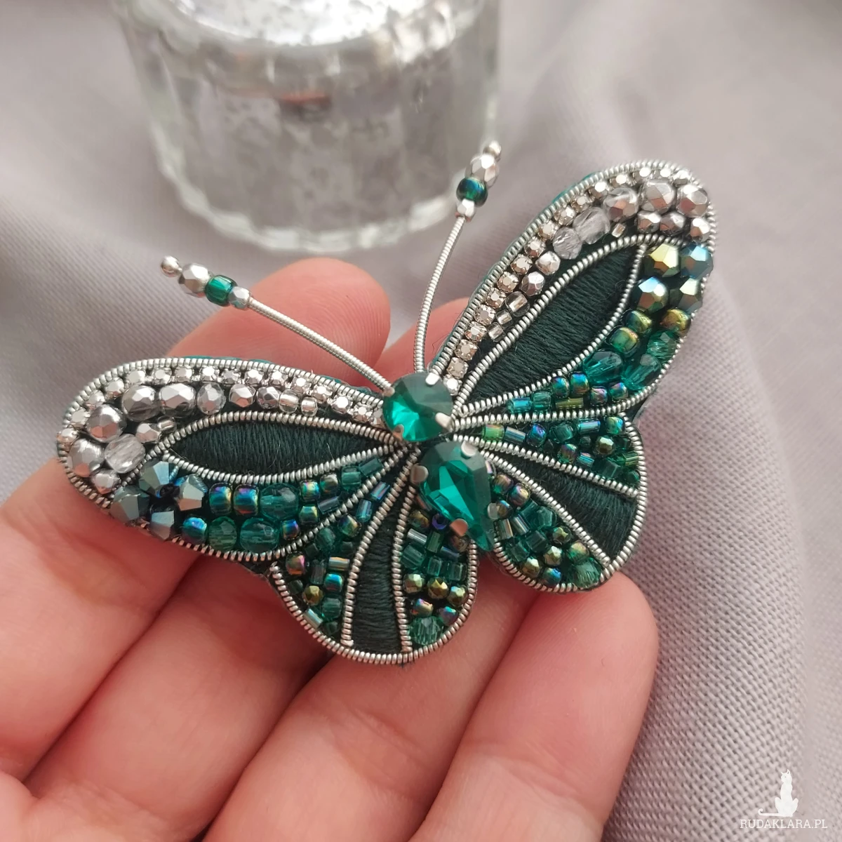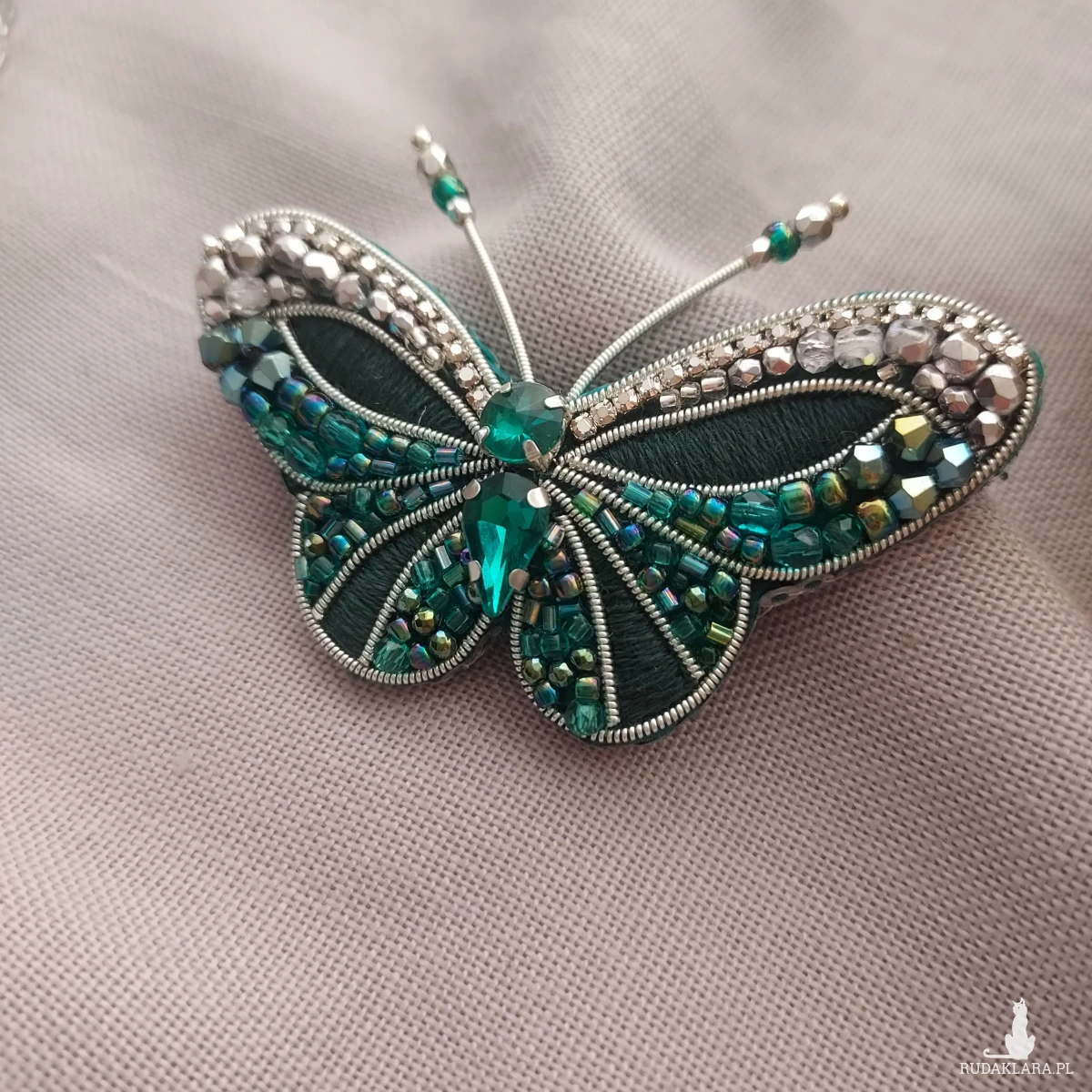 Niepowtarzalna, urocza broszka MOTYL w kolorze szmaragdowo-srebrnym jest świetnym pomysłem na uzupełnienie Twojej letniej stylizacji.