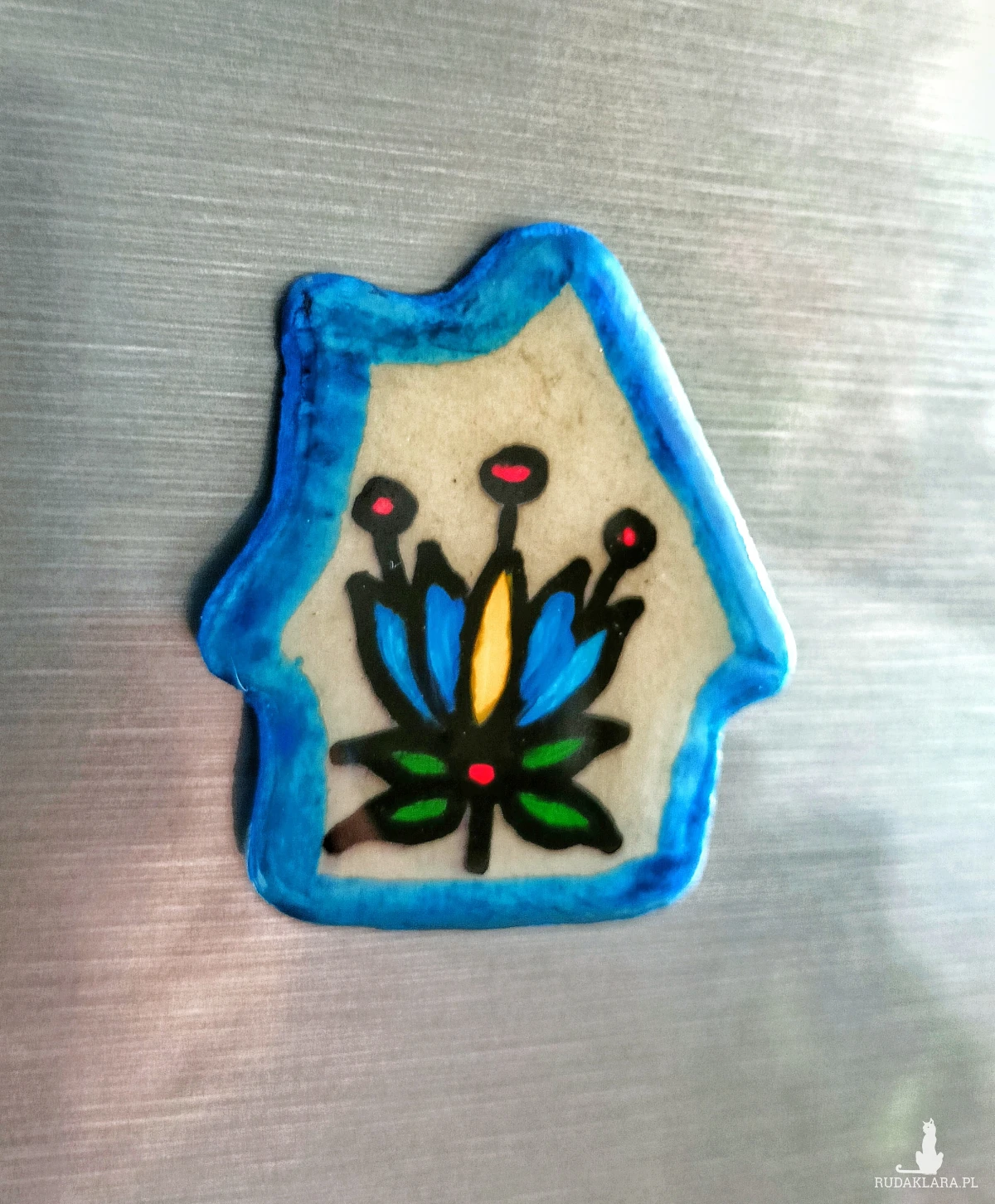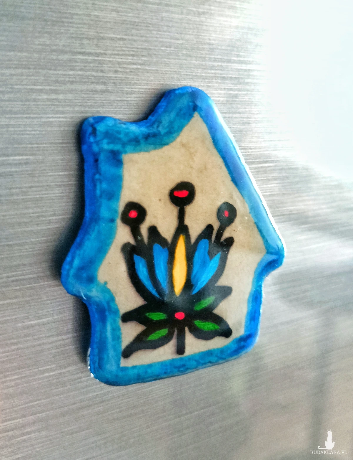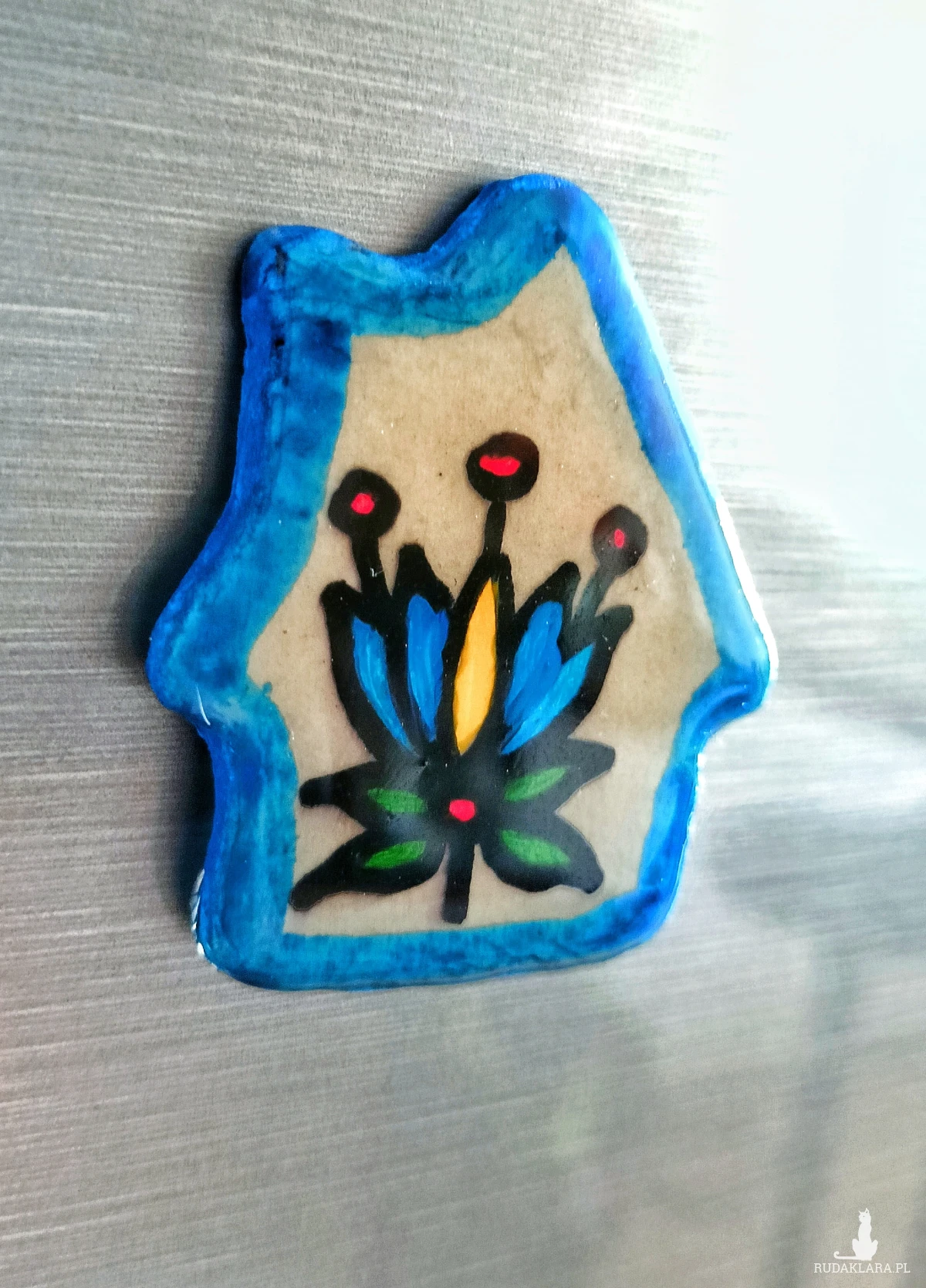magnes Kaszuby • magnes na lodówkę rękodzieło • magnes domek Kaszubski • pamiątka z Kaszub • magnes glina ręcznie malowany • magnes żywica epoksydowa • dekoracja kuchni magnes • prezent regionalny • magnes tulipan kaszubski • lato pamiątka Kaszuby