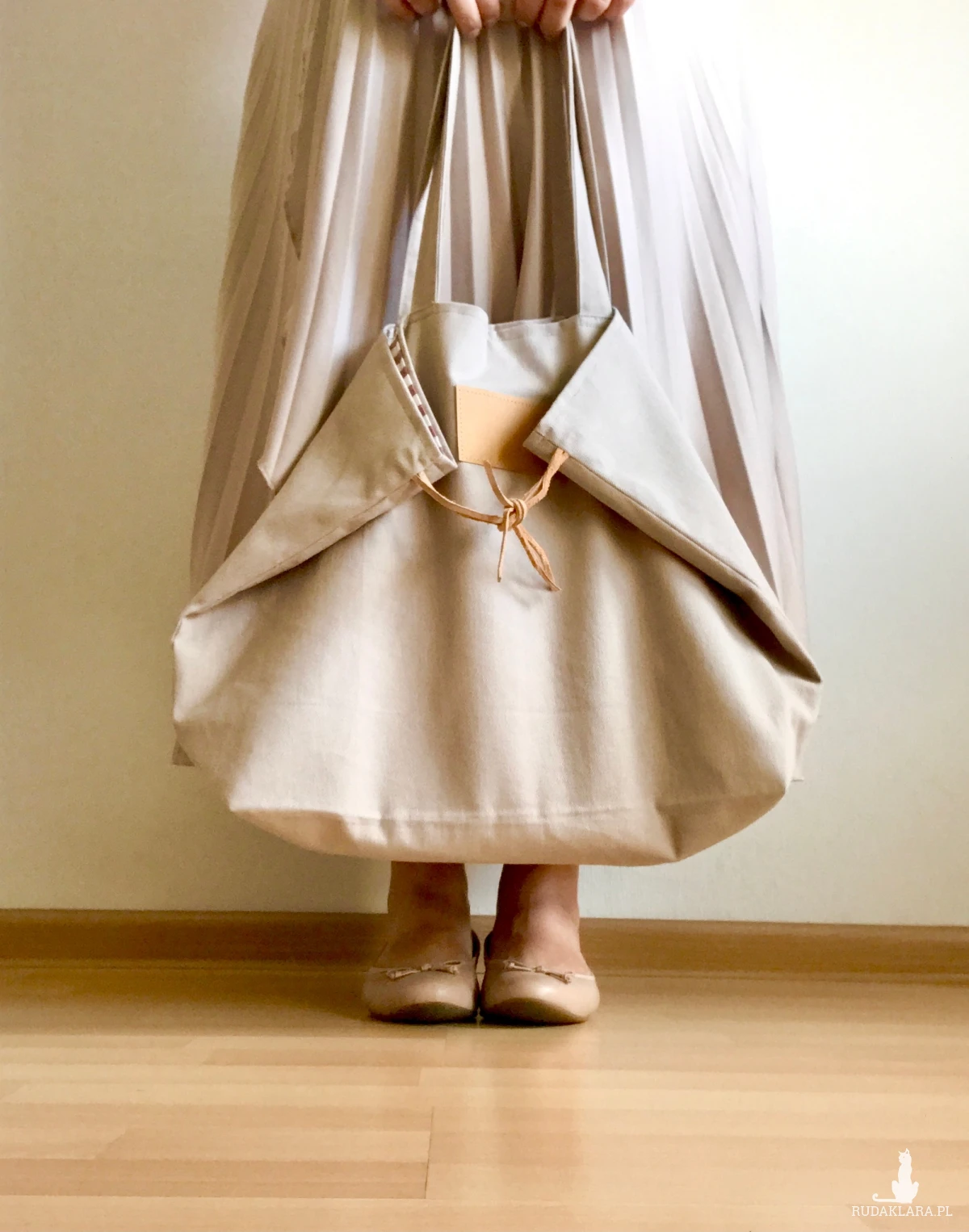 Torba jest duża, pojemna z długimi mocno przyszytymi wzmocnionymi rączkami . Dwie warstwy tkaniny gwarantują, że torba jest mocna i wytrzymała.