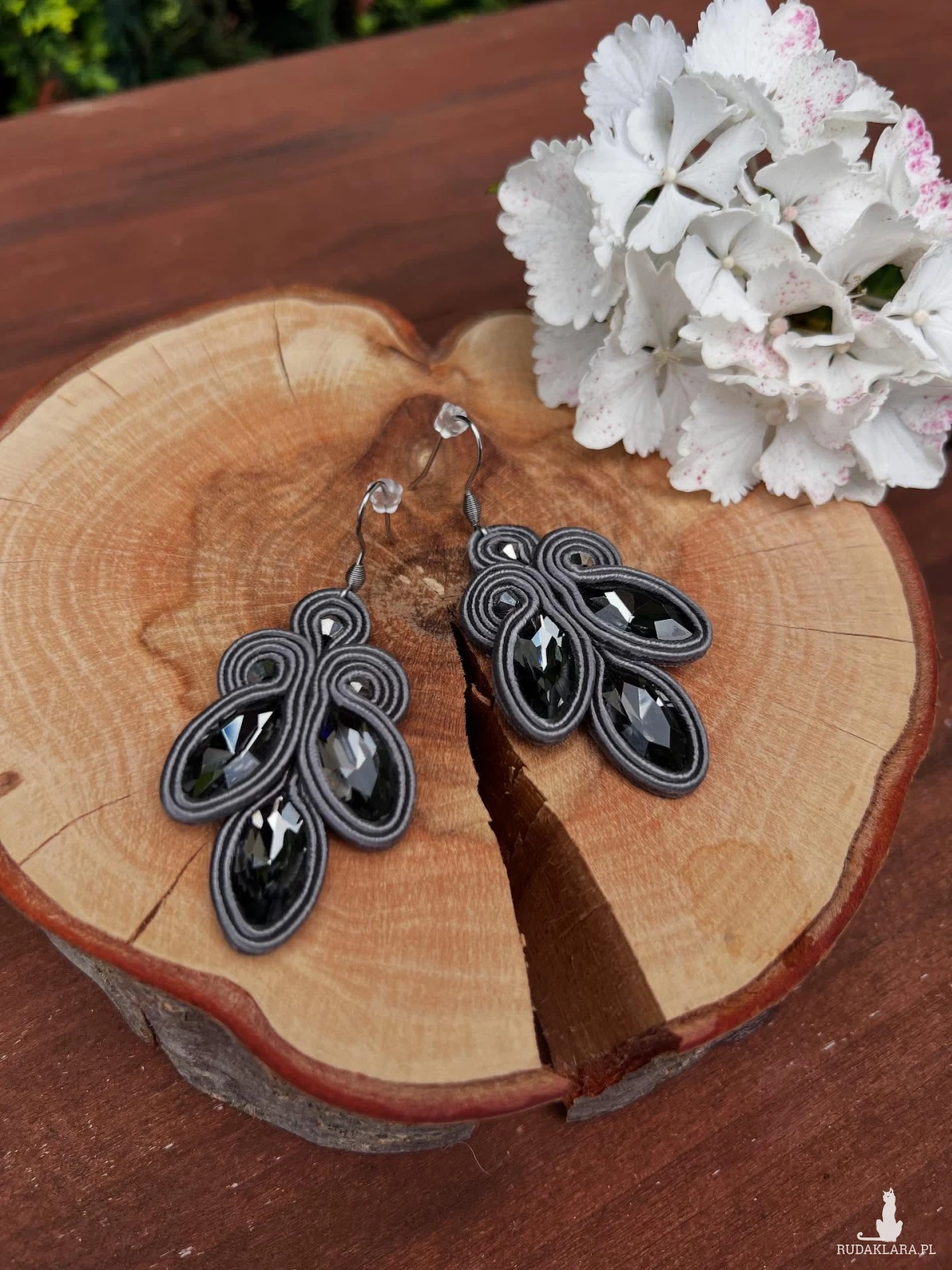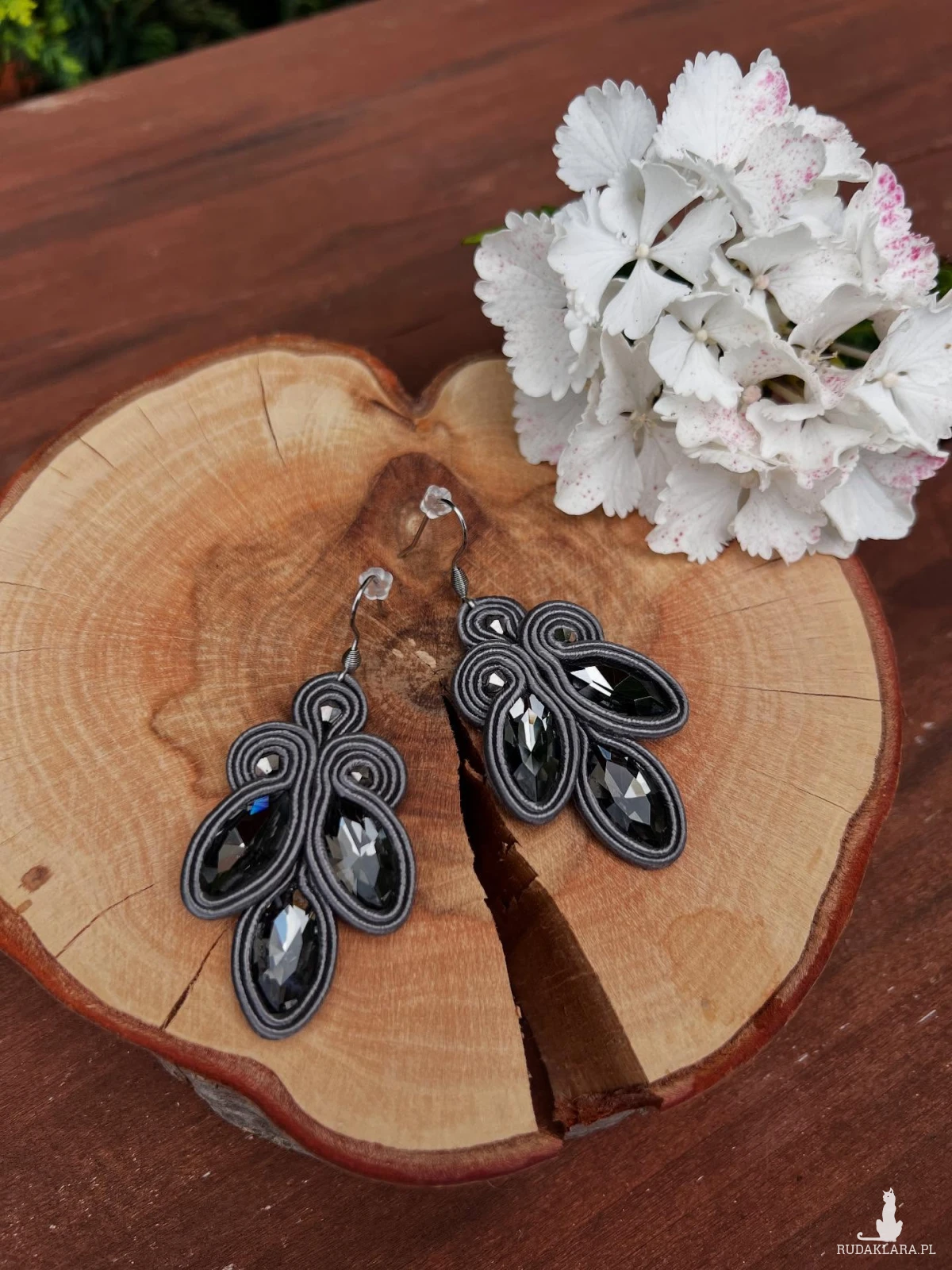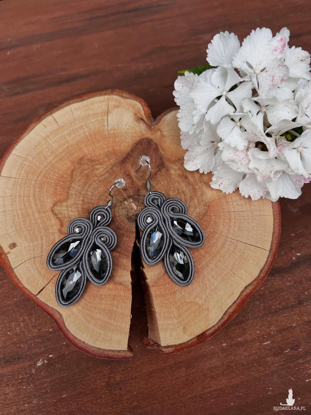 Kryształki przydymione i koraliki szklane w kolorze srebrnym