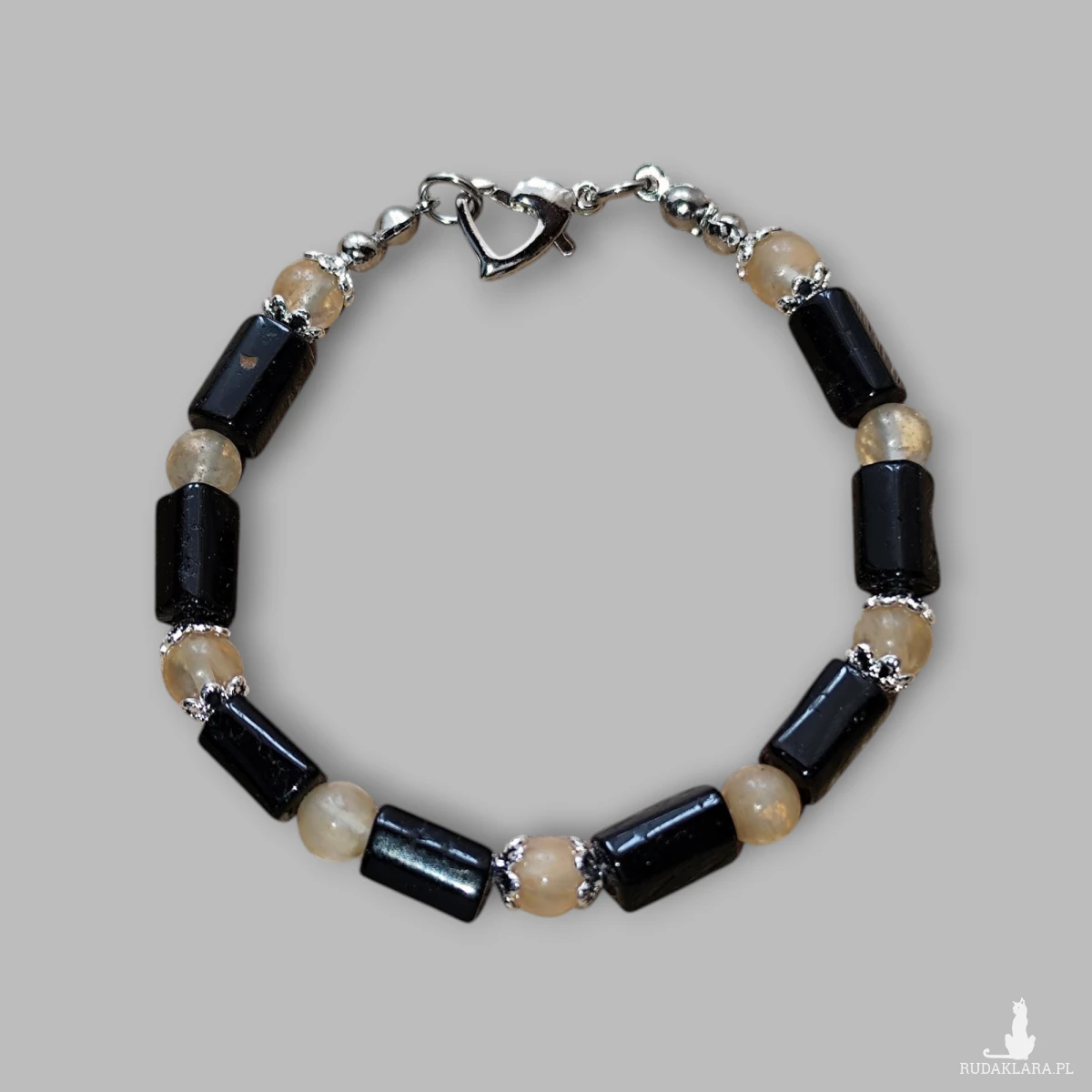 Bransoletka o długości 18 cm została nawleczona na podwójną linkę jubilerską, co gwarantuje jej wytrzymałość i bezpieczeństwo noszenia. Całość zamyka urocze i solidne zapięcie w kształcie serca, dodające jej subtelnego uroku.