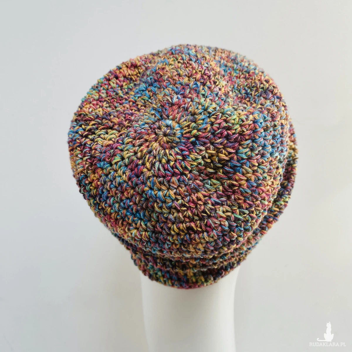 Czapkę wykonałam z wysokiej jakości włóczki bawełniano-akrylowej, która zapewnia wygodę noszenia przez cały dzień.