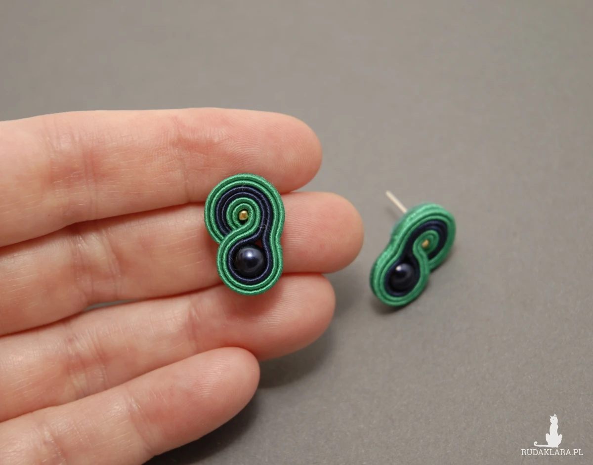 oferuję kolczyki zrobione haftem sutasz, ozdobione koralikami