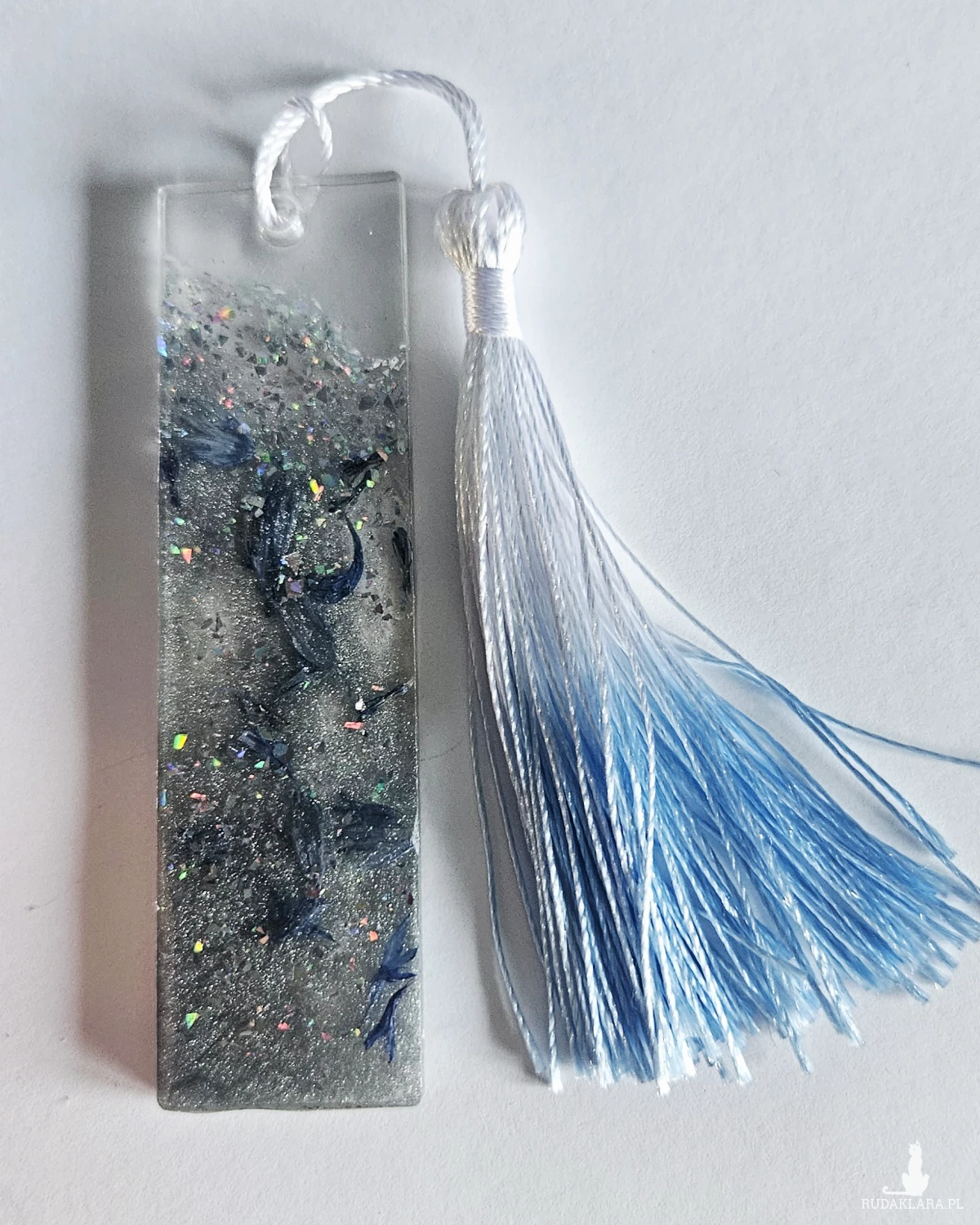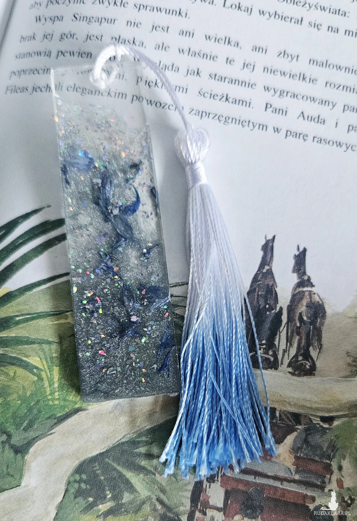 Zakładka z żywicy epoksydowej z kryształkami i płatkami chabru M28