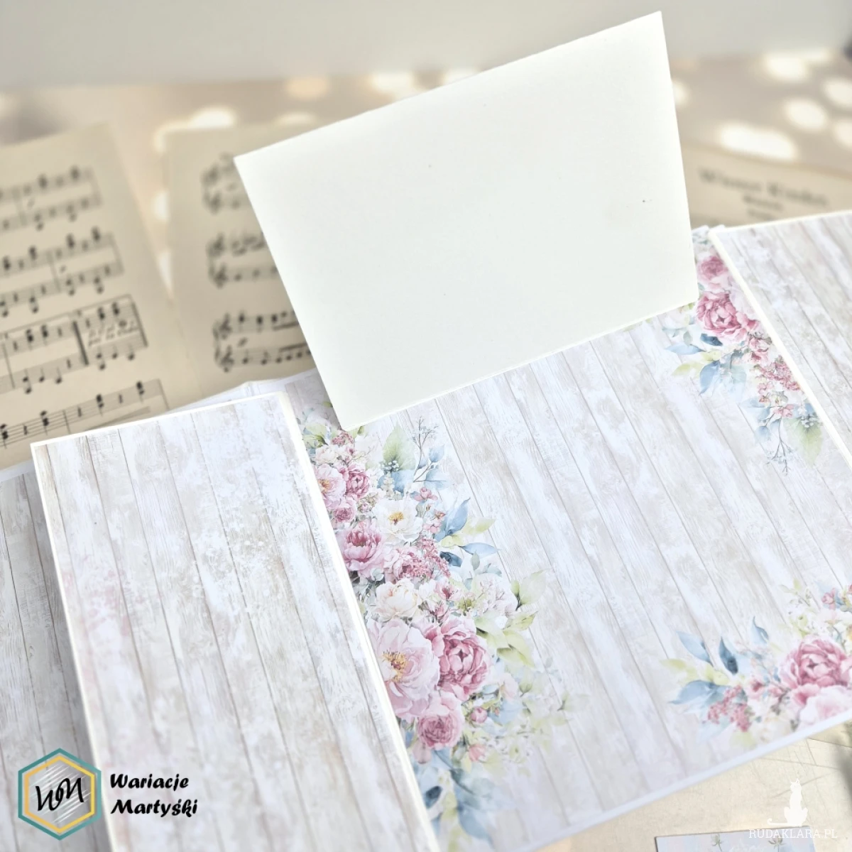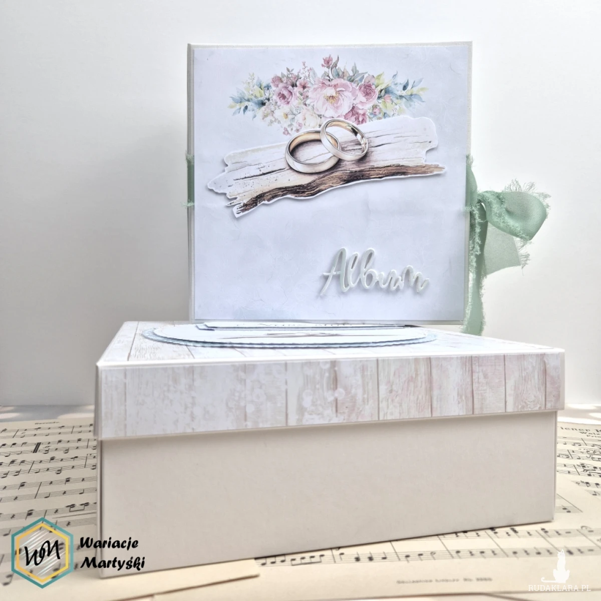Każdy papier, każda karta i każdy detal zostały dobrane tak, by tworzyły jedną historię – cichą, elegancką i pełną emocji. Pudełko nie tylko chroni album, ale też podkreśla jego wyjątkowy charakter – to gotowy prezent, który nie wymaga już niczego więcej.