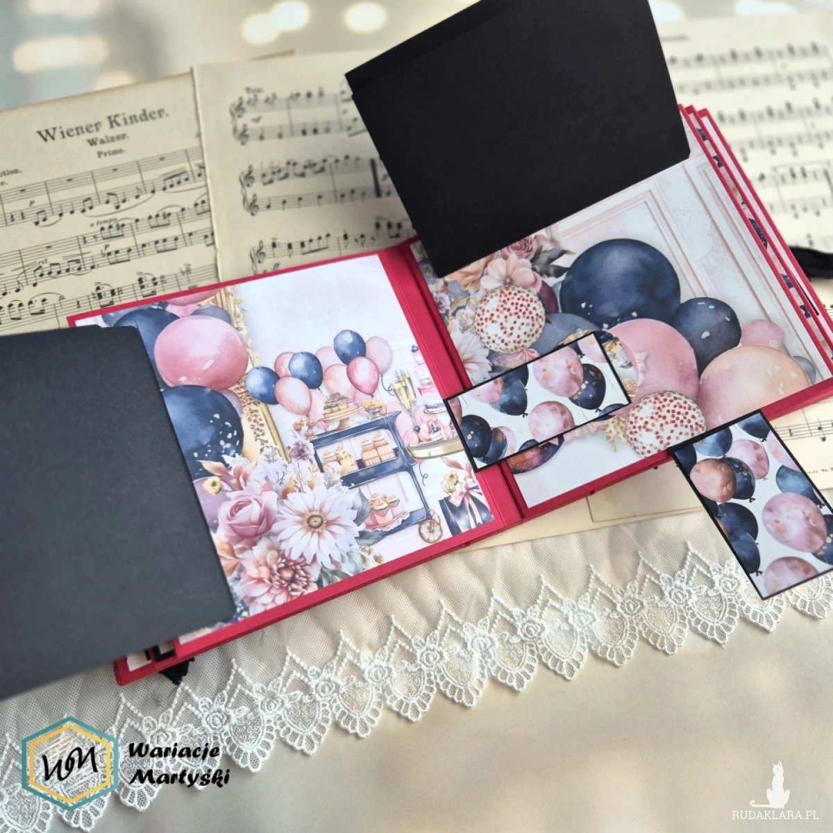 Oto album, który stanie się prawdziwym skarbcem wspomnień — piękny, ręcznie wykonany, z dbałością o każdy detal. Jego bogata, żywa kolorystyka zachwyca od pierwszego spojrzenia — intensywne róże, purpury, złociste tony i brokatowe akcenty łączą się, tworząc niesamowicie energetyczną i elegancką całość.
