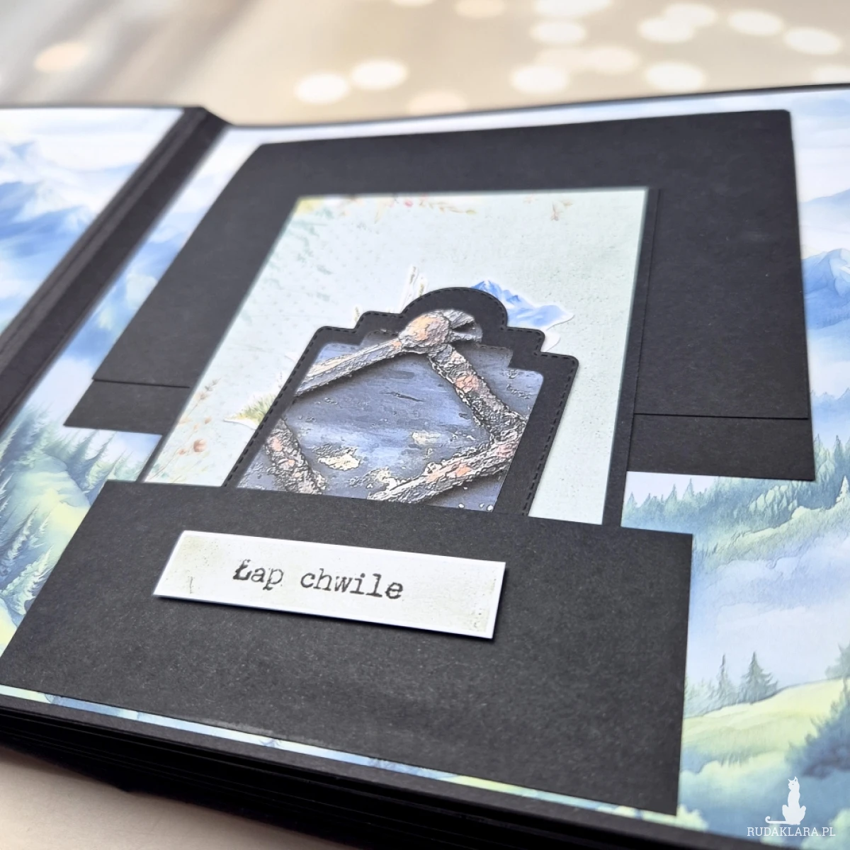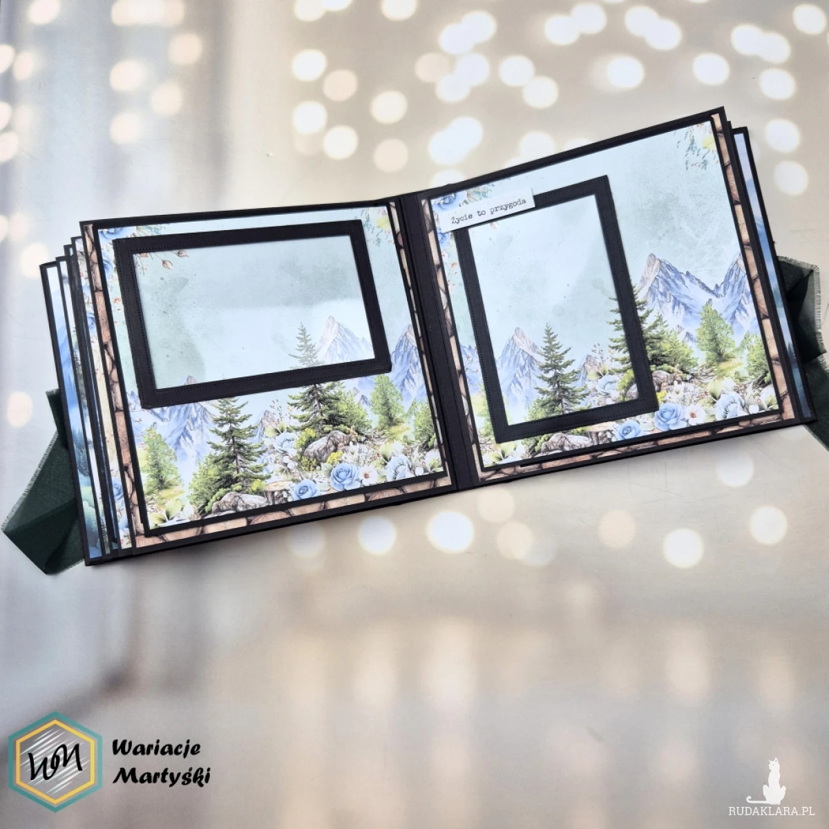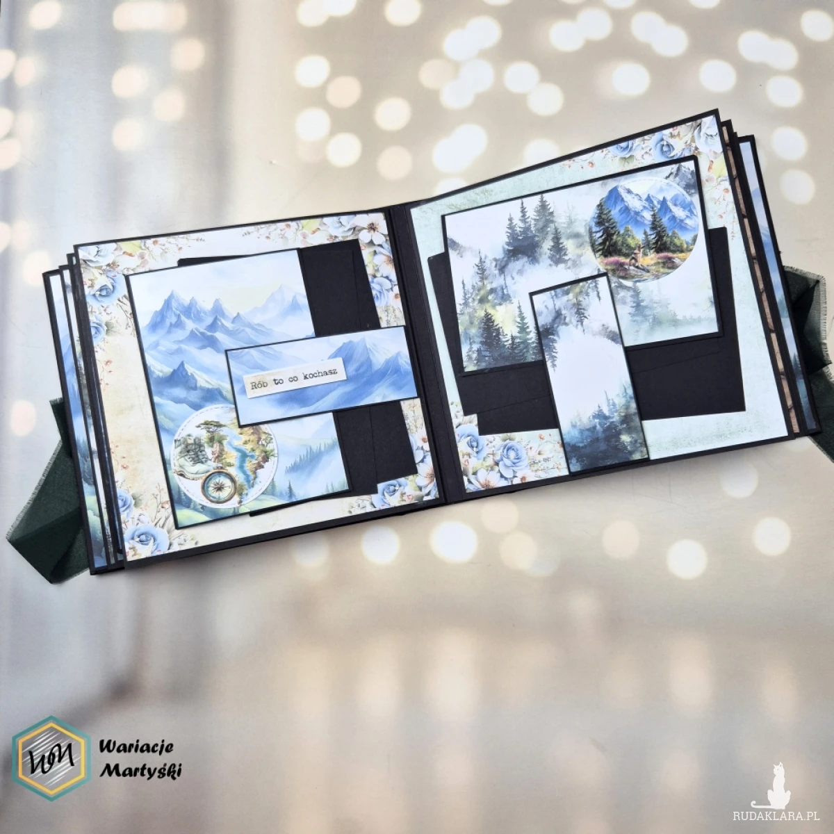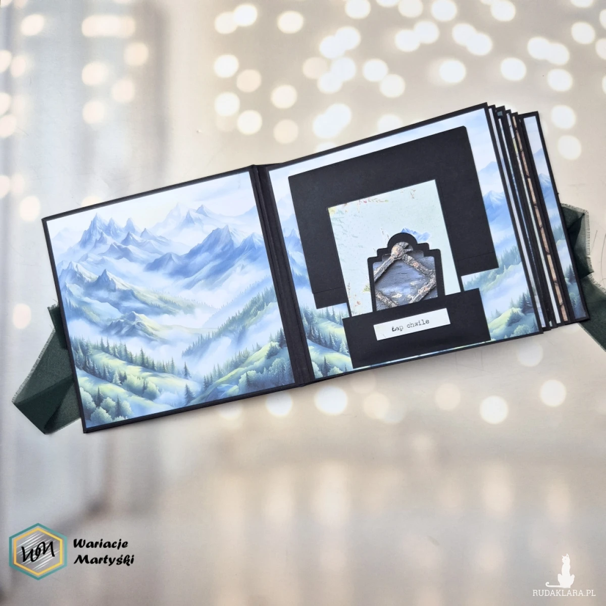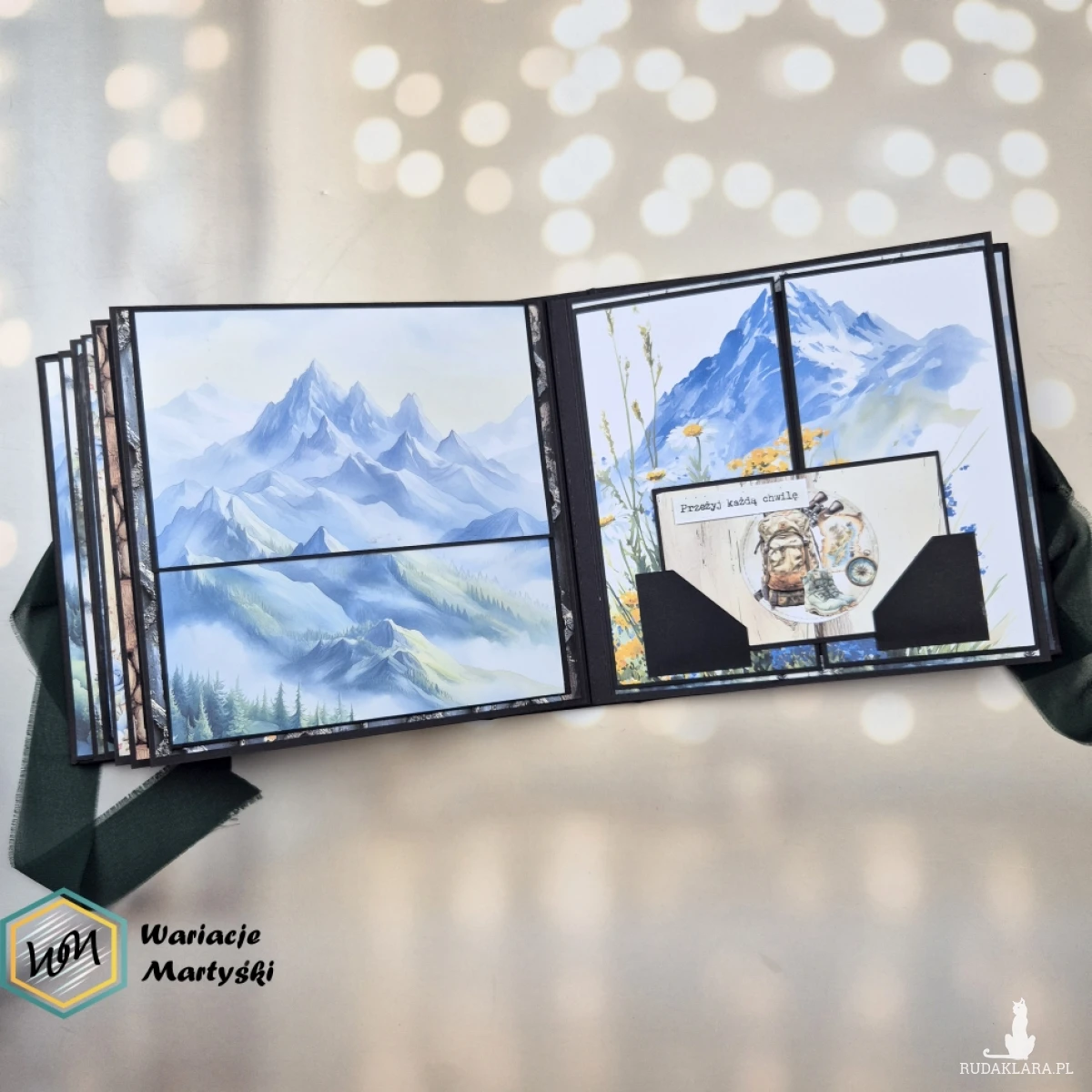 Okładka w naturalnym, górskim klimacie i czarne karty wewnątrz tworzą wyjątkową oprawę dla zdjęć. Czerń pięknie podkreśla kolory krajobrazów – błękit nieba, zieleń lasów, biel śniegu czy ciepłe barwy zachodu słońca.