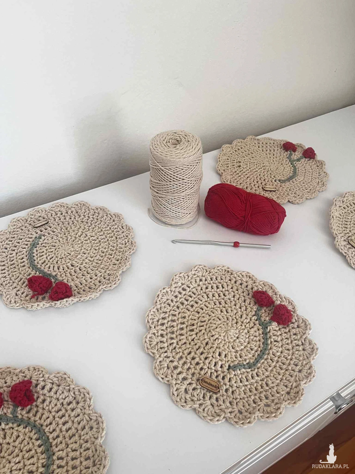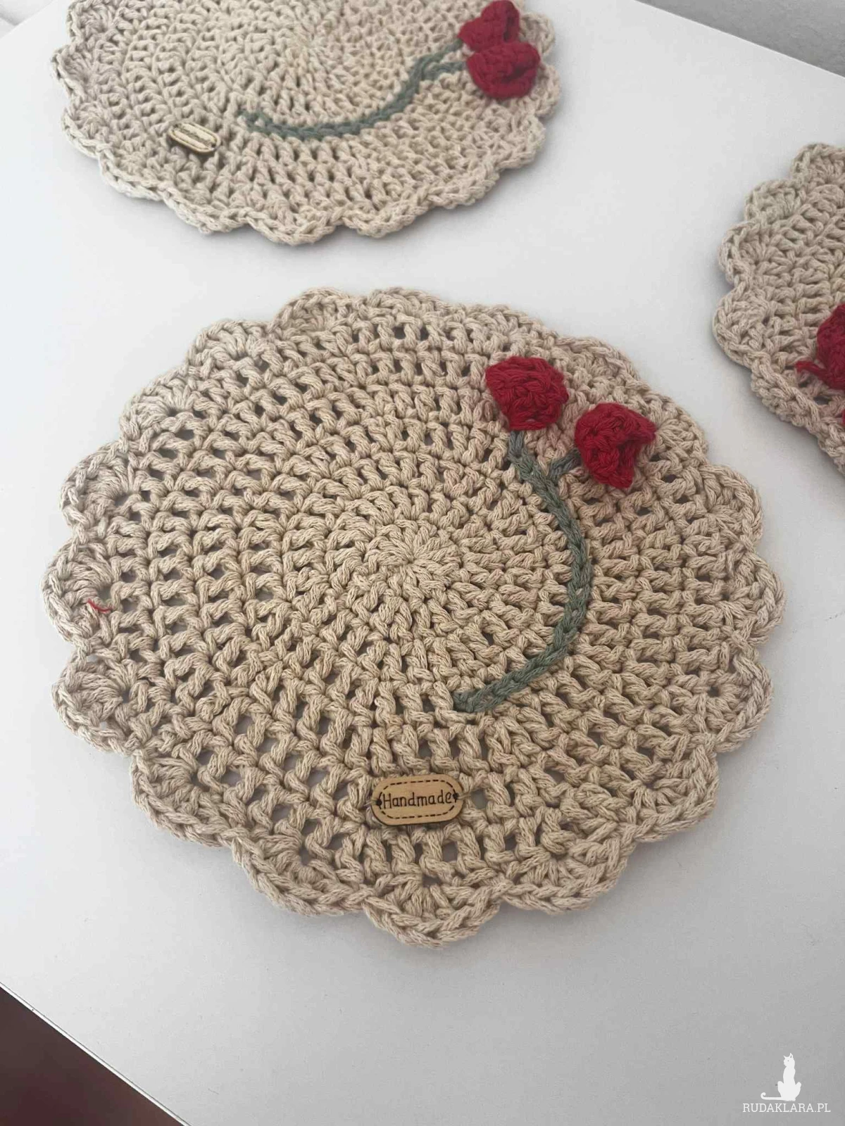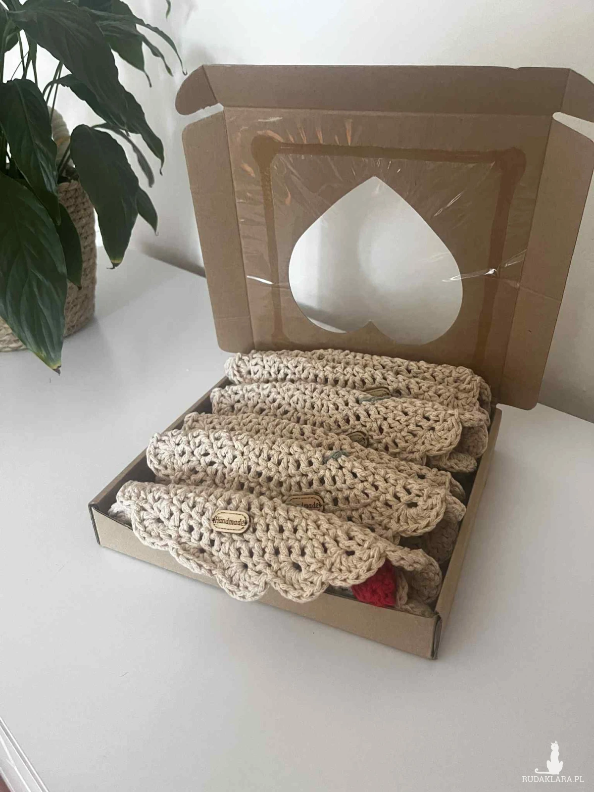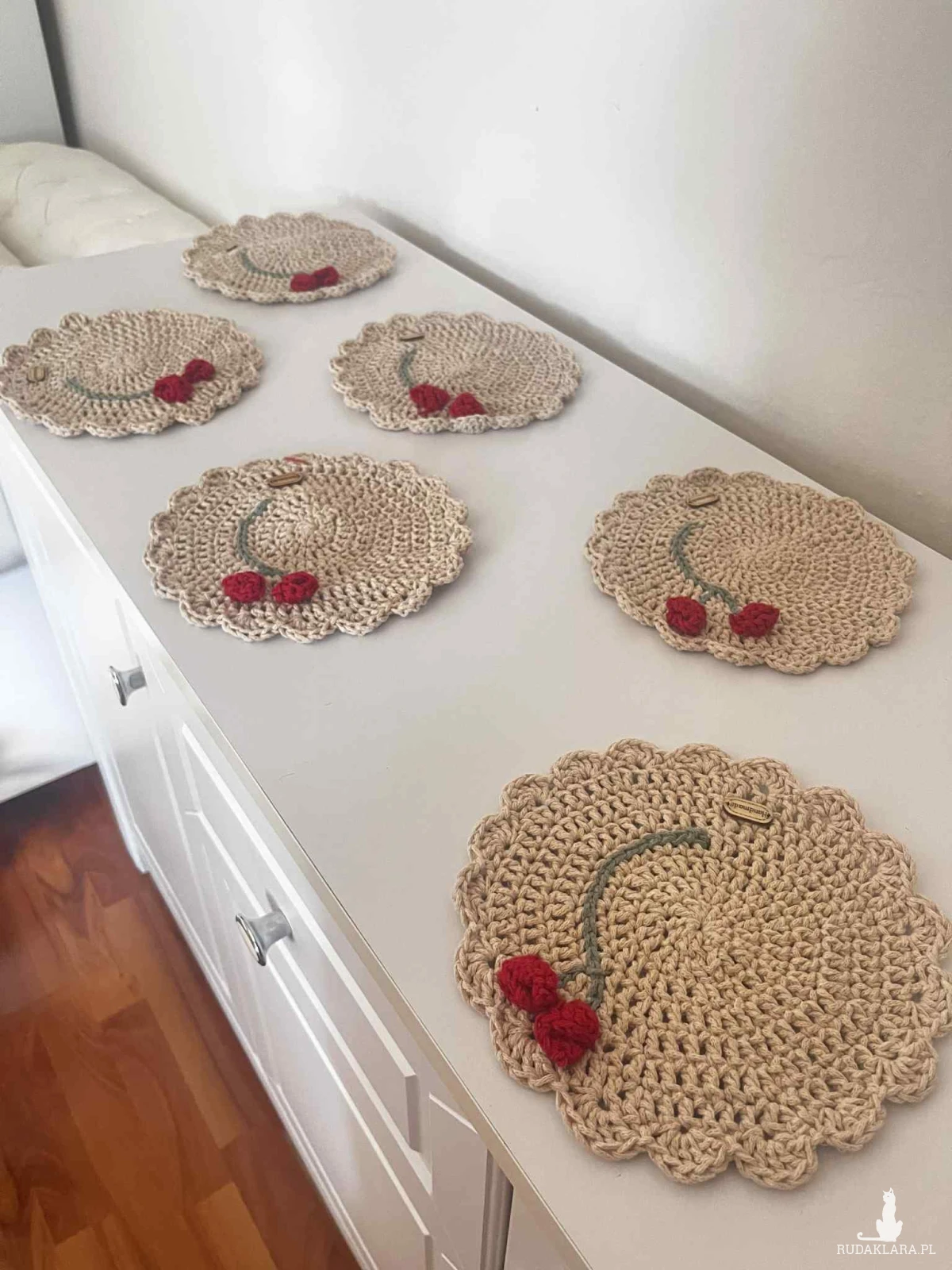 6 Szydełkowych podkładek zrobione ze sznurka bawełnianego średnica 27cm.Zapakowane w kartonik gotowe na prezent. Polecam.