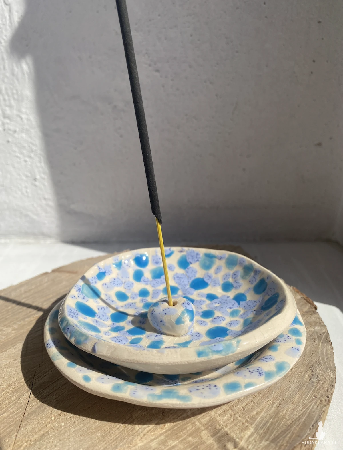 Palolopuli rękodzieło . Ceramiczna postaweczka na kadzidełko wraz z talerzykiem na skarby.