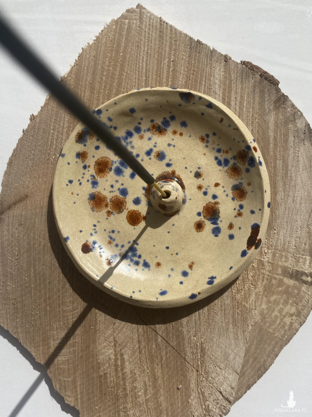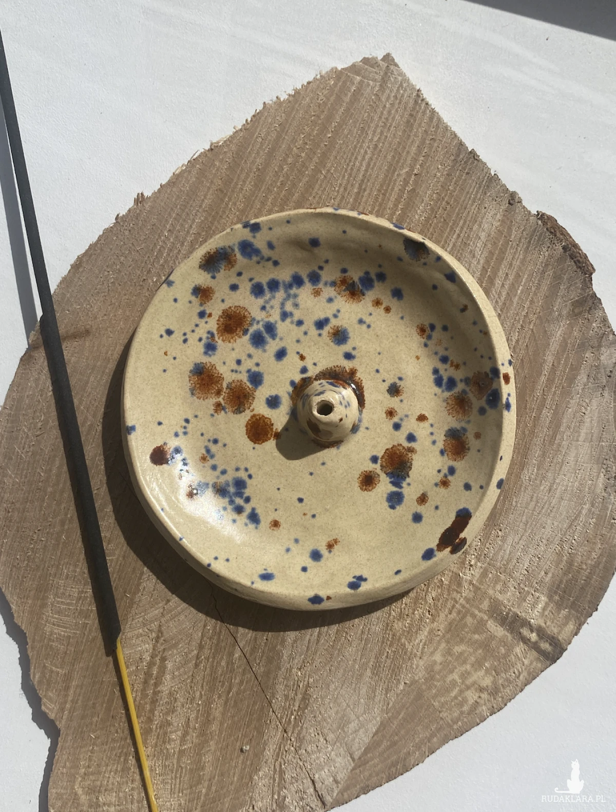 Ceramiczna podstaweczka na kadzidełko. Szkliwiona wewnętrznie.
