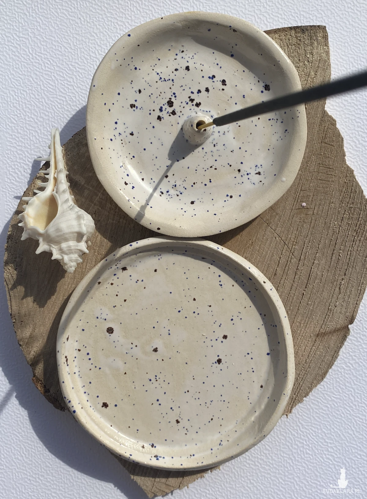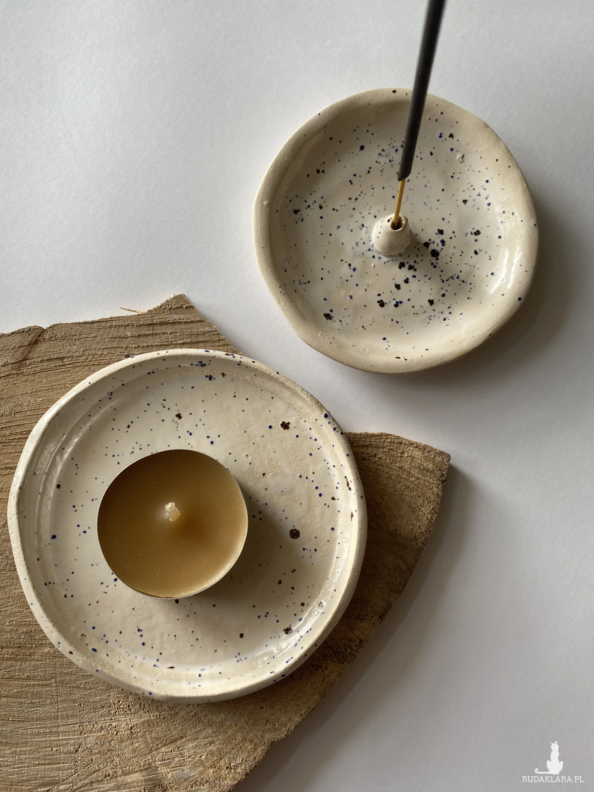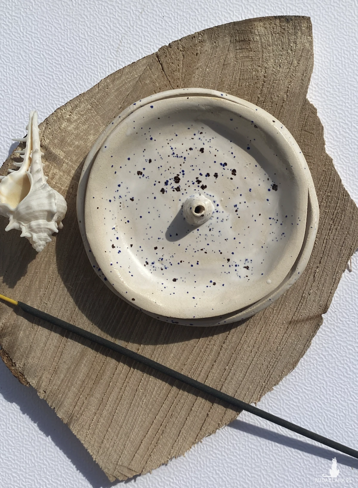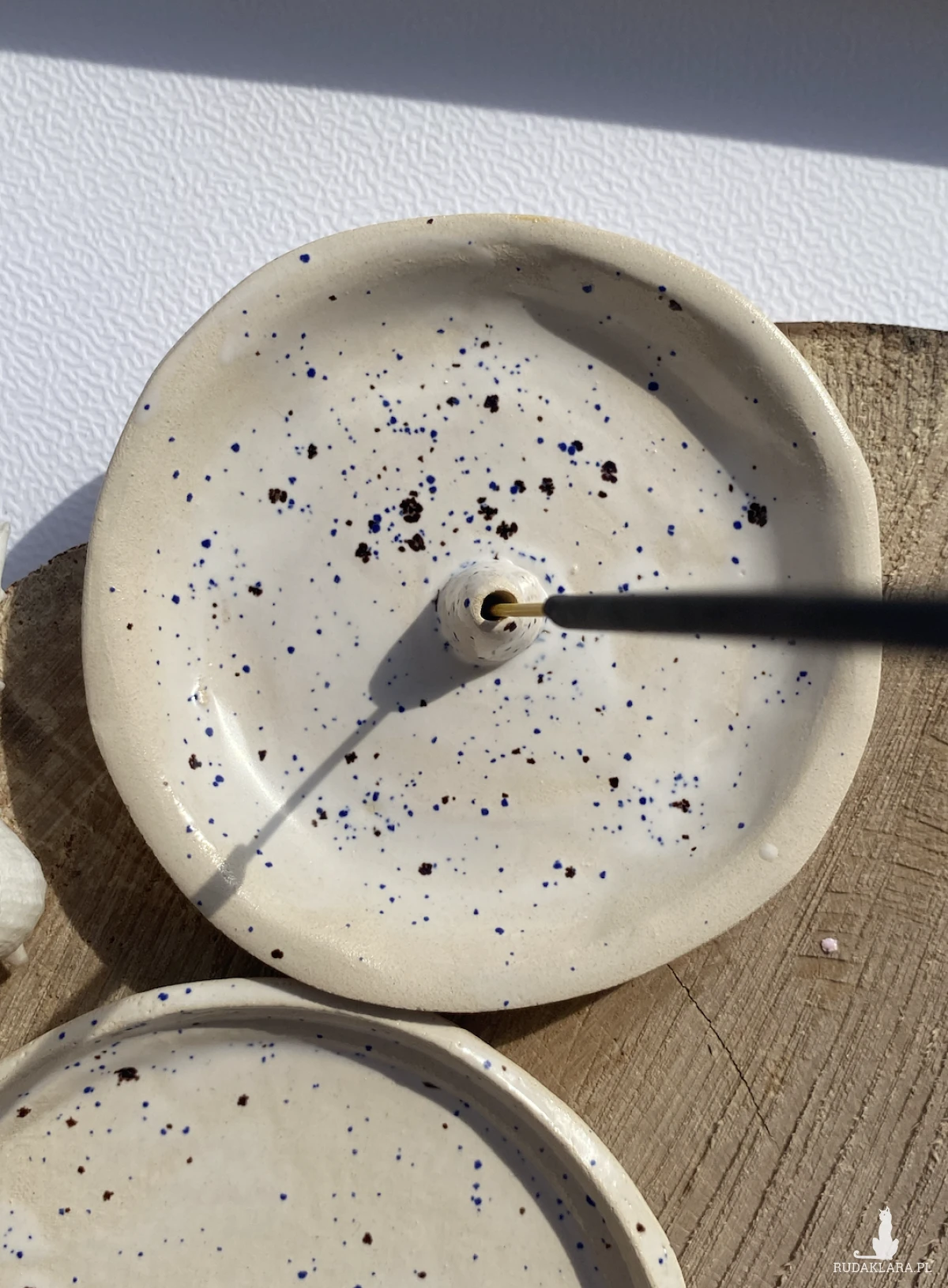 Palolopuli rękodzieło . Ceramiczna postaweczka na kadzidełko wraz z talerzykiem na skarby.