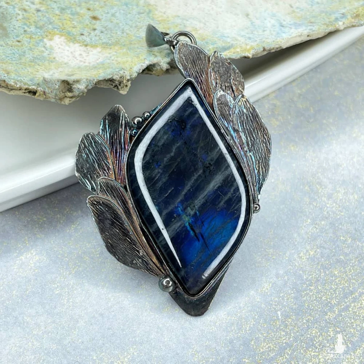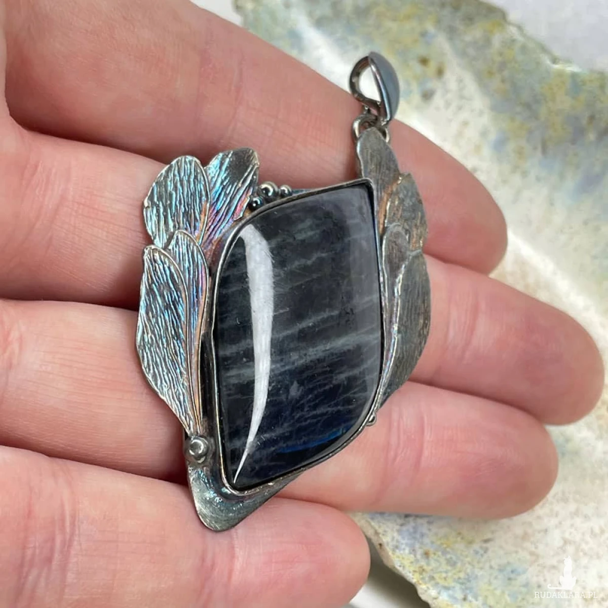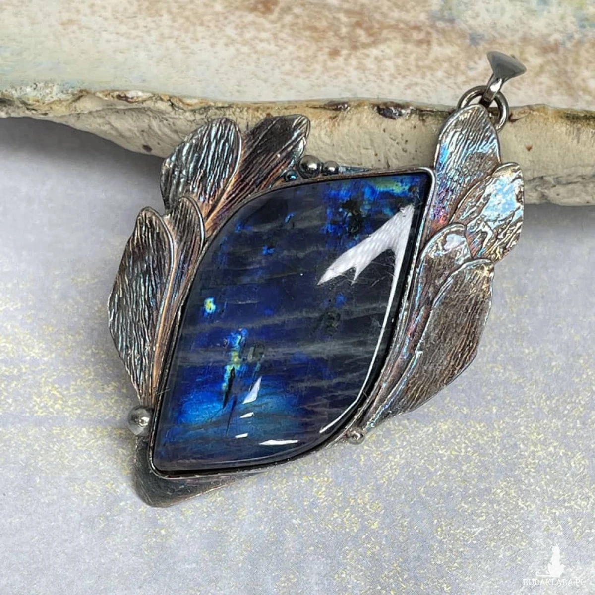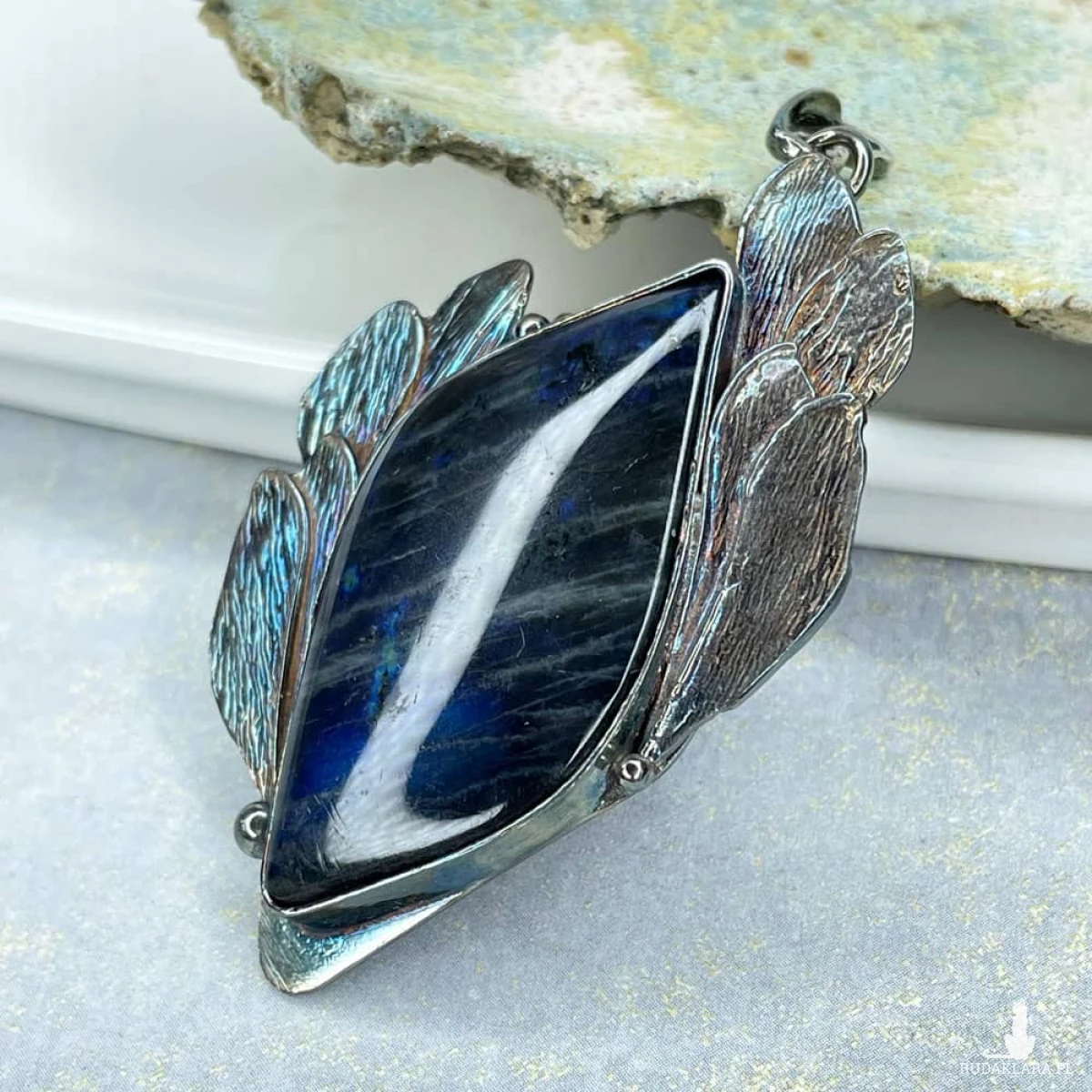 Naszyjnik ze spektrolitem to biżuteria, która zachwyca wyjątkowym blaskiem i precyzją ręcznego wykonania. Centralnym elementem jest spektrolit – kamień o hipnotyzujących refleksach, mieniących się niczym nocne niebo pełne gwiazd. Oprawiony w srebro próby 925 i ozdobiony subtelnymi motywami piór, naszyjnik łączy w sobie elegancję, lekkość i nowoczesny charakter. To wyrafinowany dodatek, który podkreśli indywidualny styl, doda blasku każdej stylizacji i stanie się ponadczasową ozdobą na lata.
