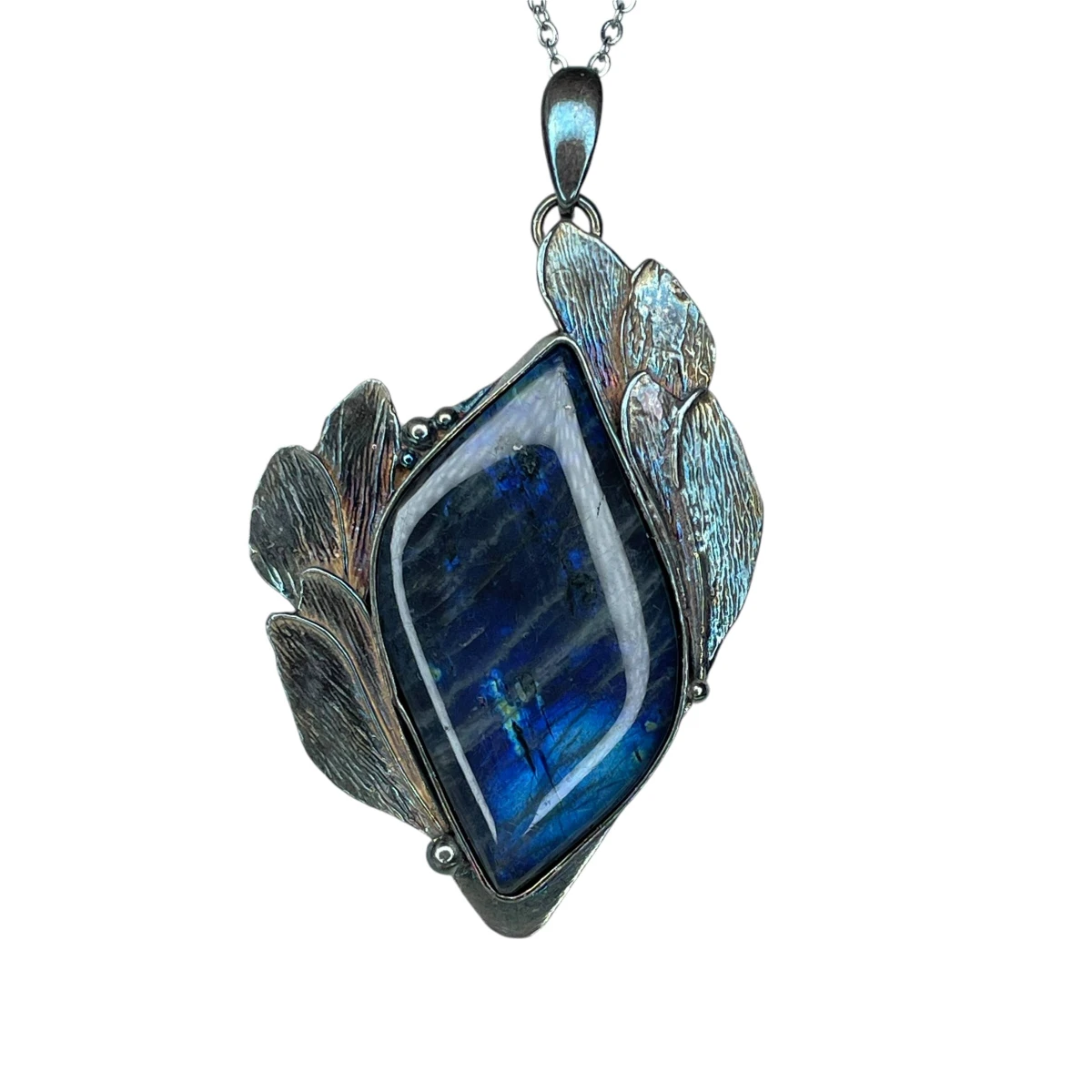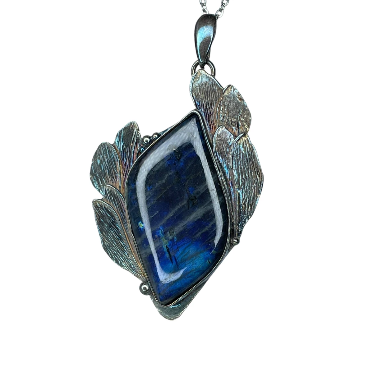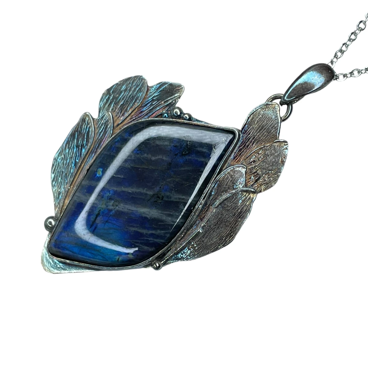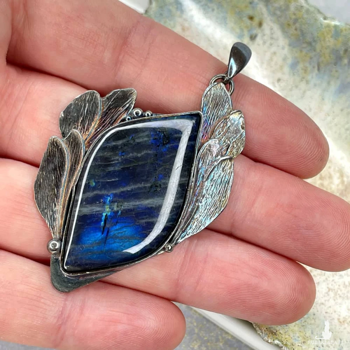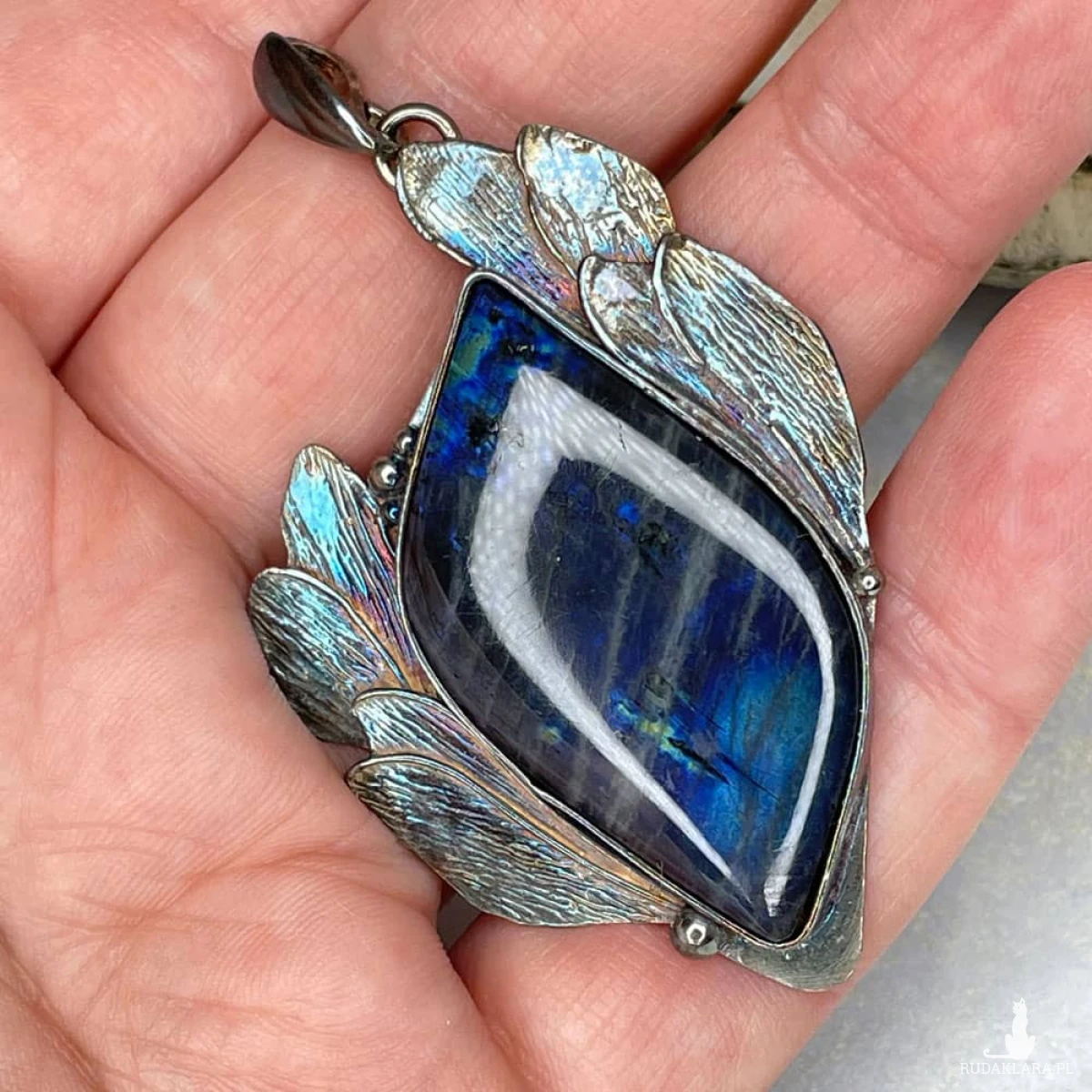Naszyjnik ze spektrolitem to biżuteria, która zachwyca wyjątkowym blaskiem i precyzją ręcznego wykonania. Centralnym elementem jest spektrolit – kamień o hipnotyzujących refleksach, mieniących się niczym nocne niebo pełne gwiazd. Oprawiony w srebro próby 925 i ozdobiony subtelnymi motywami piór, naszyjnik łączy w sobie elegancję, lekkość i nowoczesny charakter. To wyrafinowany dodatek, który podkreśli indywidualny styl, doda blasku każdej stylizacji i stanie się ponadczasową ozdobą na lata.