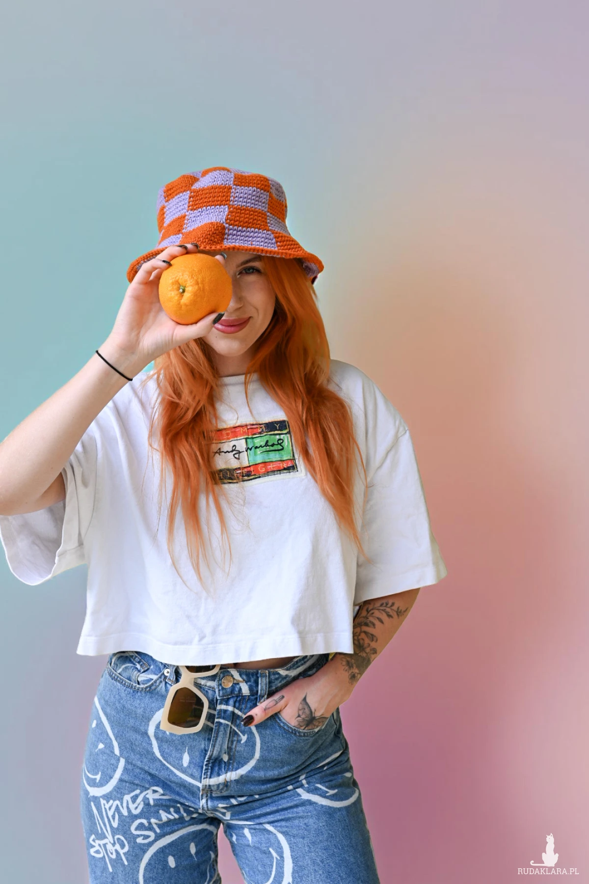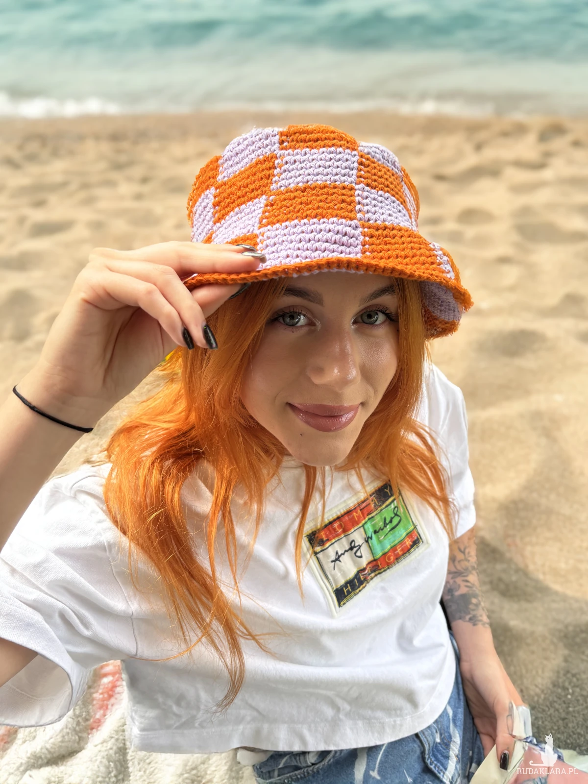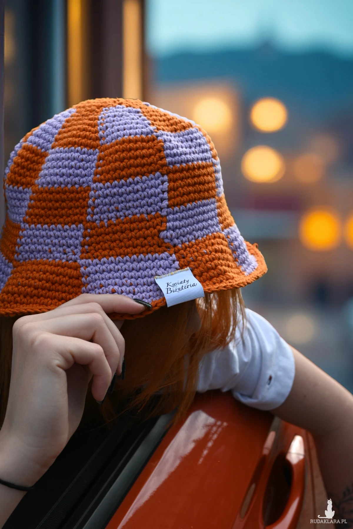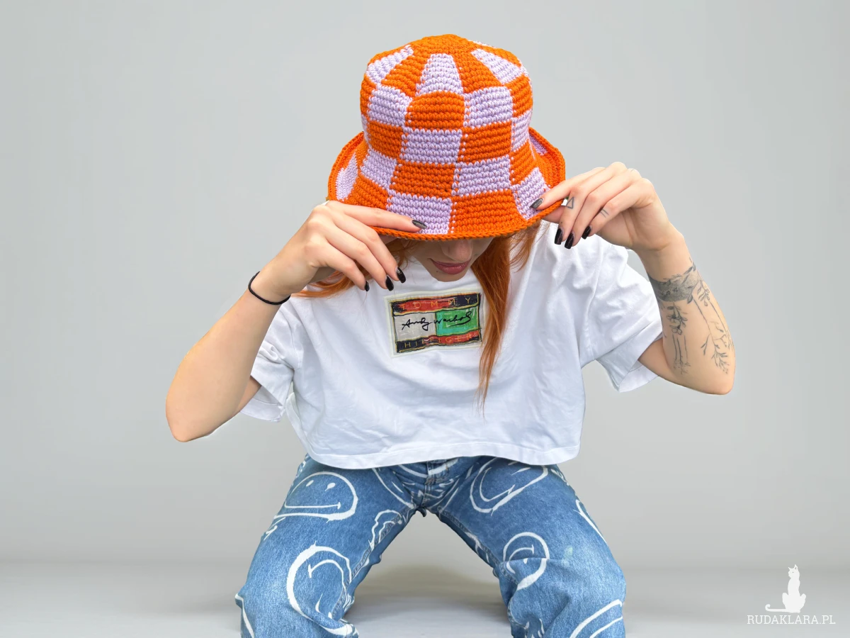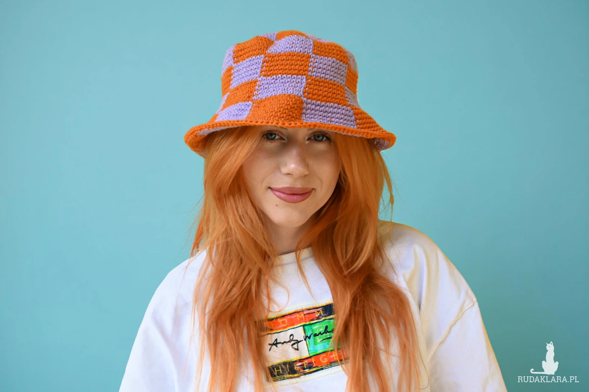 Ten szydełkowany bucket hat w klimatycznym duecie kolorów creamy purple & burnt orange to totalny must-have na lato.