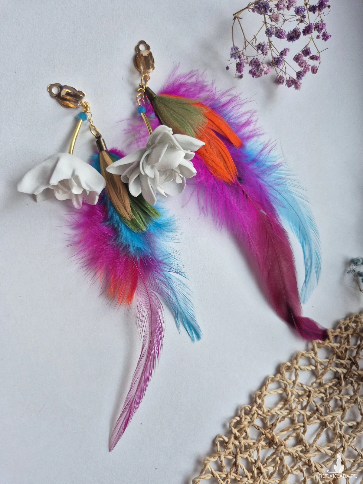 Klipsy pióra dlugie  lekkie kwiaty polecam naprawdę robią wrażenie