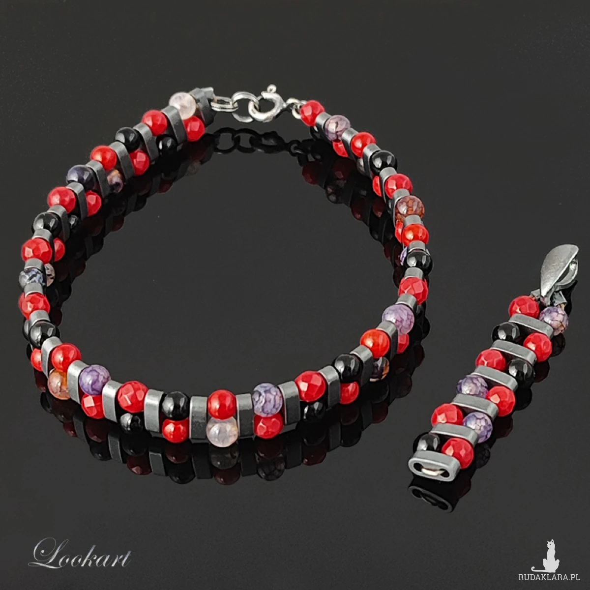 Oksydowany komplet z kamieni naturalnych i srebra – bransoletka i wisiorek