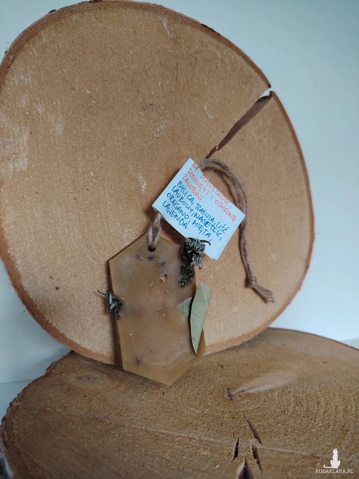 Zawieszka z wosku pszczelego z zatopionymi ziołami to nie tylko piękny naturalny dodatek do wnętrza, ale też pełen symbolicznej i magicznej mocy talizman. Każde z tych ziół wnosi inną energię, a w połączeniu tworzą ochronną, oczyszczającą i wzmacniającą aurę