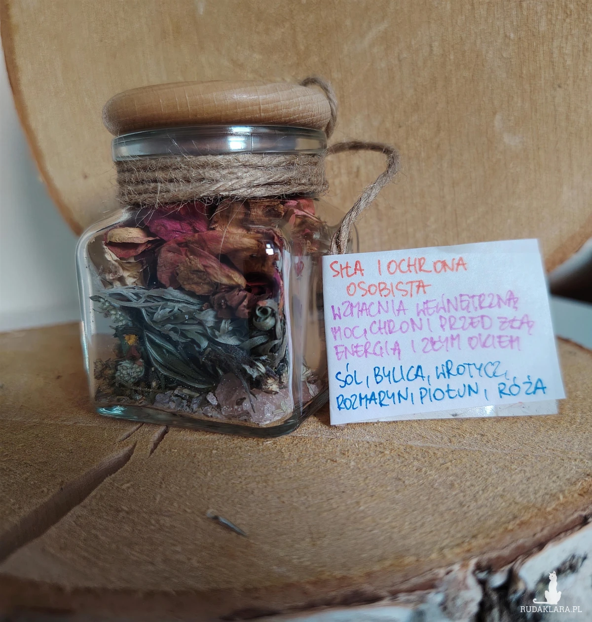 Ręcznie przygotowany talizman w formie szklanego słoiczka, wypełniony starannie dobranymi ziołami i naturalną solą. Każdy składnik ma swoje znaczenie i moc, a razem tworzą unikalną kompozycję energetyczną wspierającą wybraną intencję.