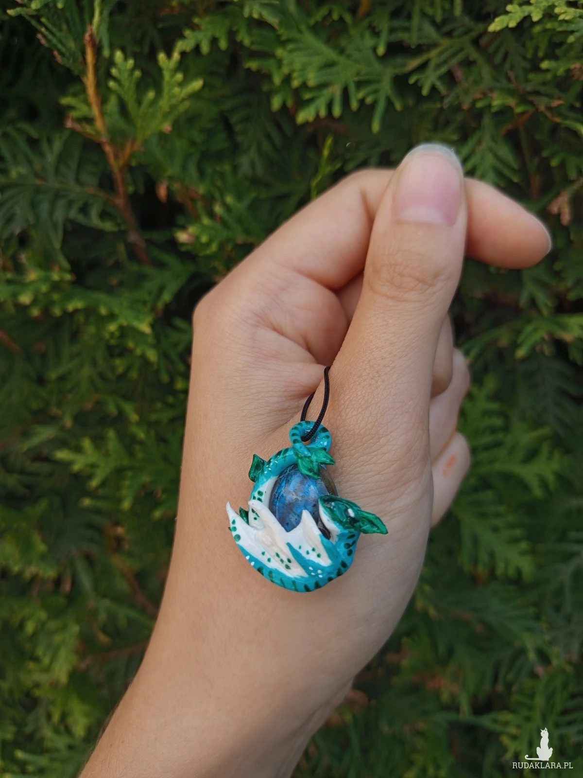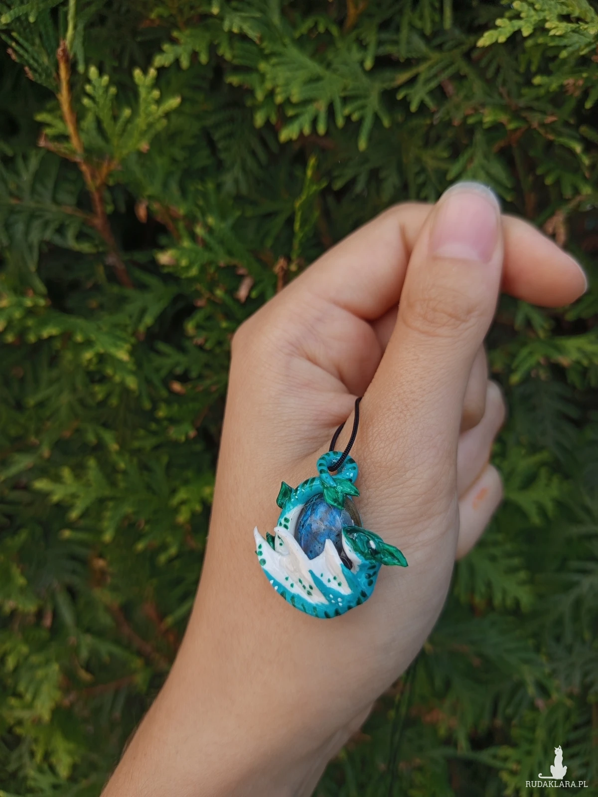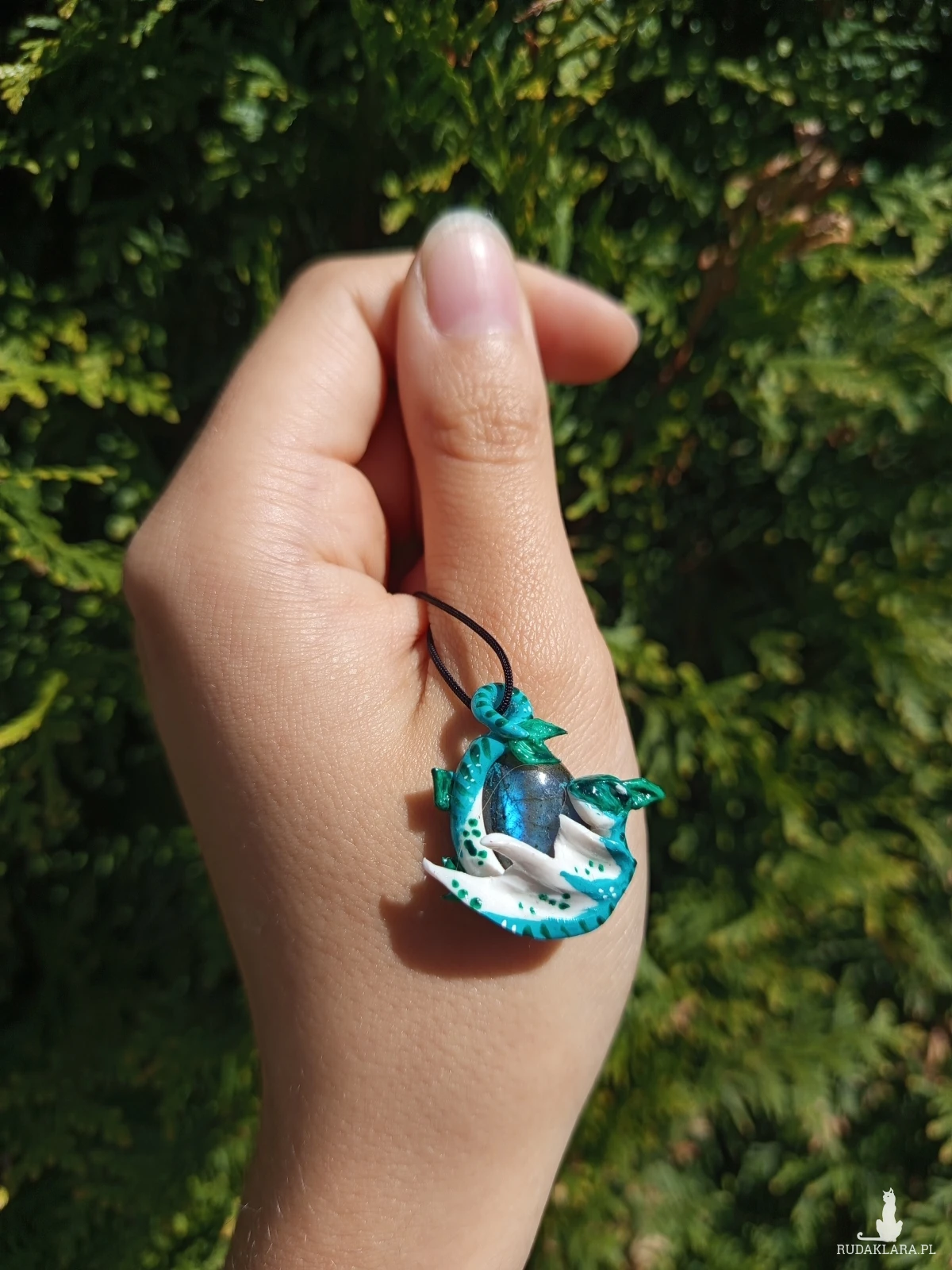 Naszyjnik małego smoka z labradorytem, idealny na prezent, magia fantasty