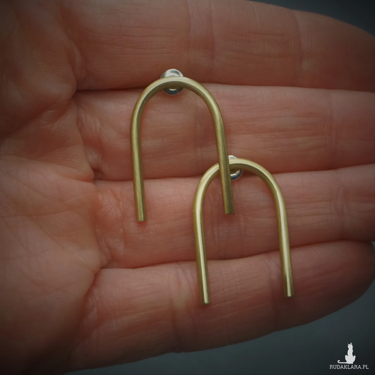Unikatowe, minimalistyczne, kolczyki sztyfty z mosiądzu, wykonane od podstaw ręcznie, inspirowane symbolami Aborygenów. Wielkość kolczyków wsyokość 29 mm, szerokość 17mm. Kolczyki wysyłam w eleganckim pudełeczku w kolorze grafitowym.