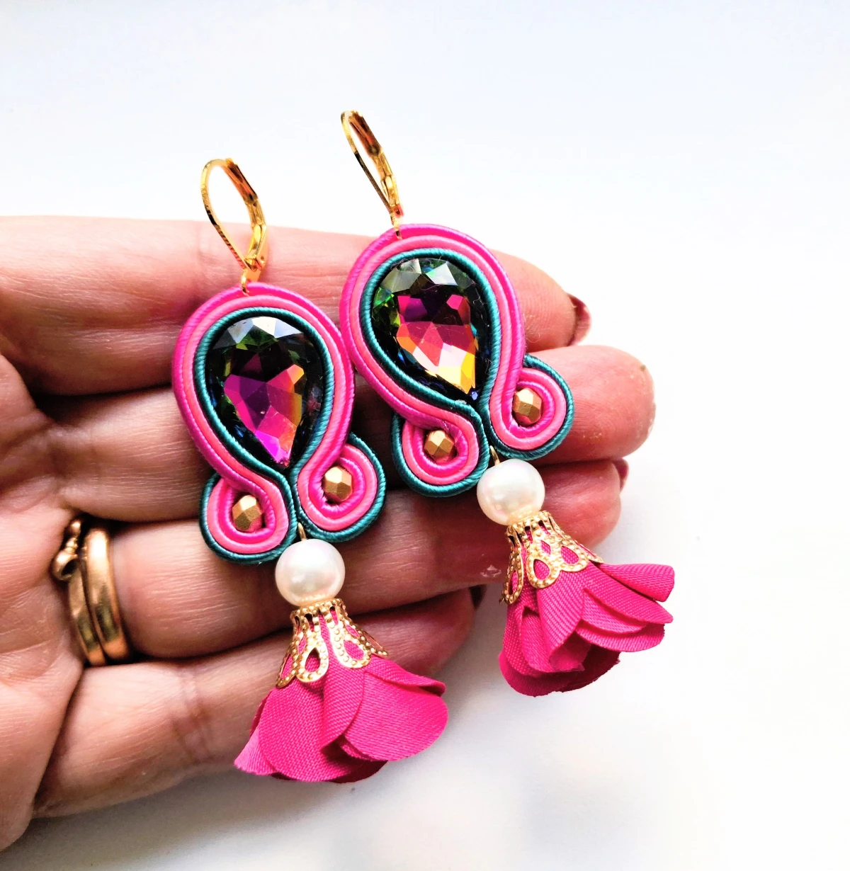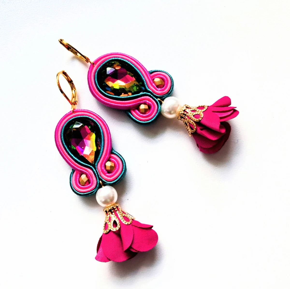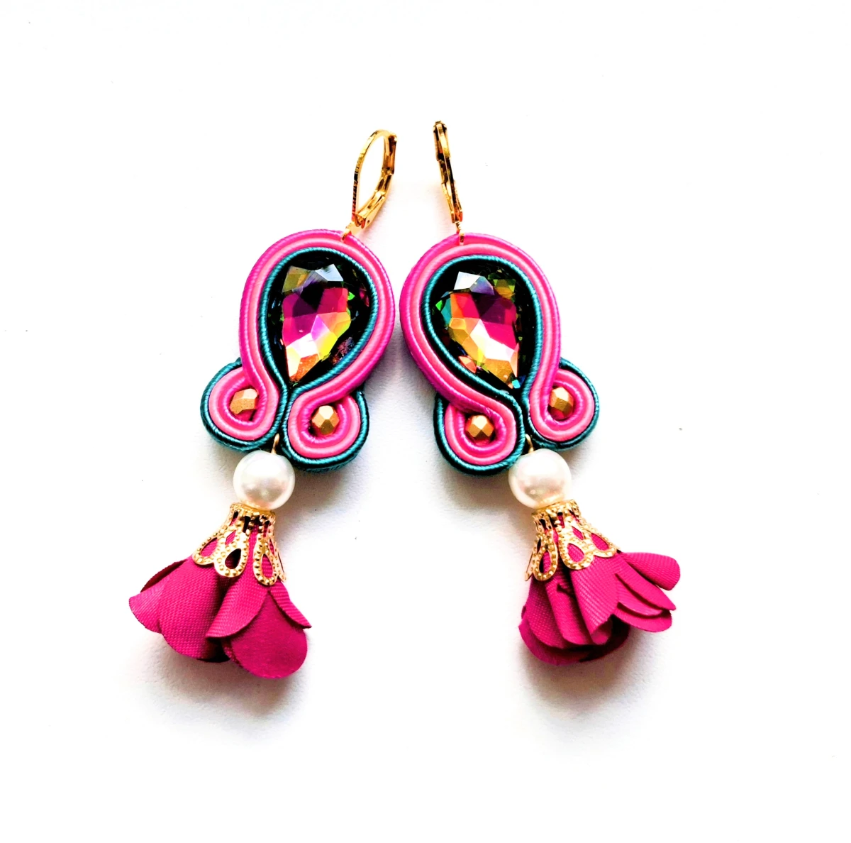 Kolczyki sutaszowe ręcznie haftowane.