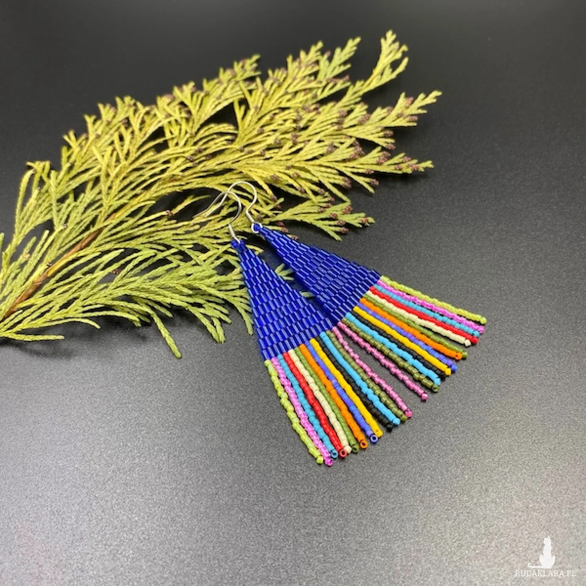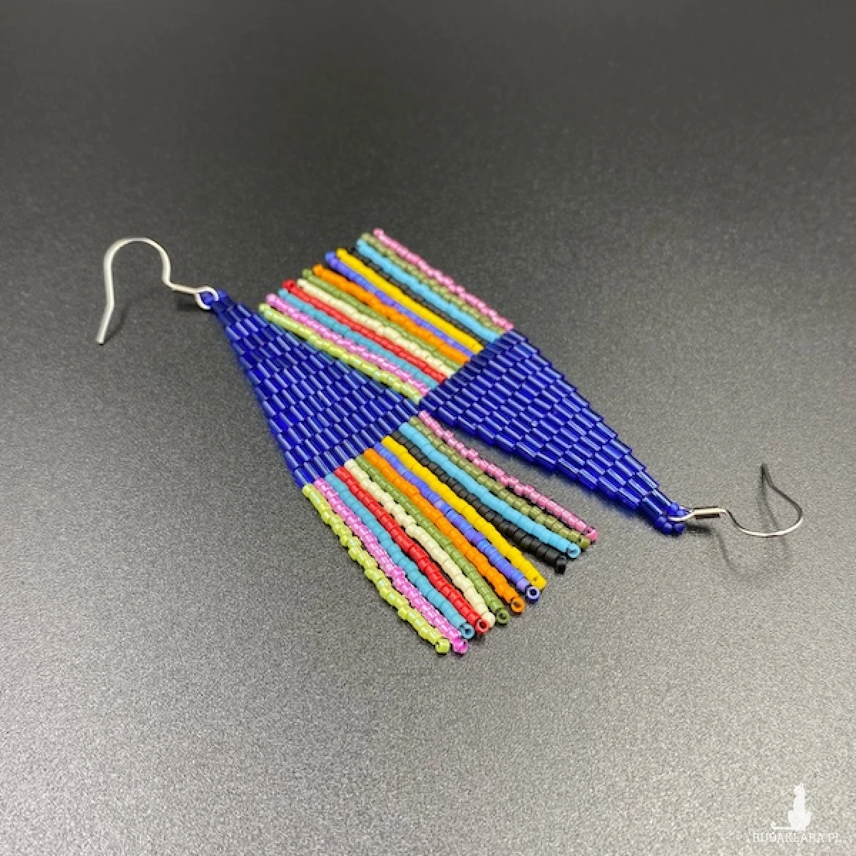 Etniczne kolczyki zostały w 100% utkane ręcznie z małych rurek i koralików Miyuki. Każdą pracę wykonuję bardzo starannie.
