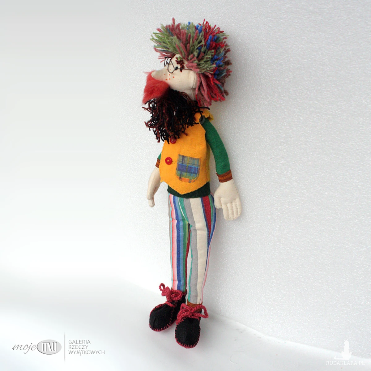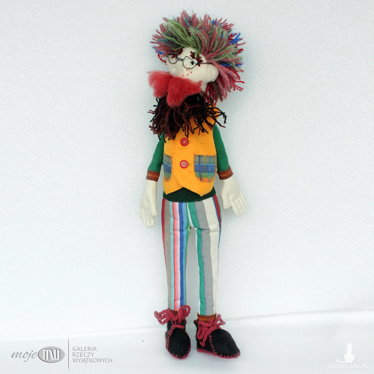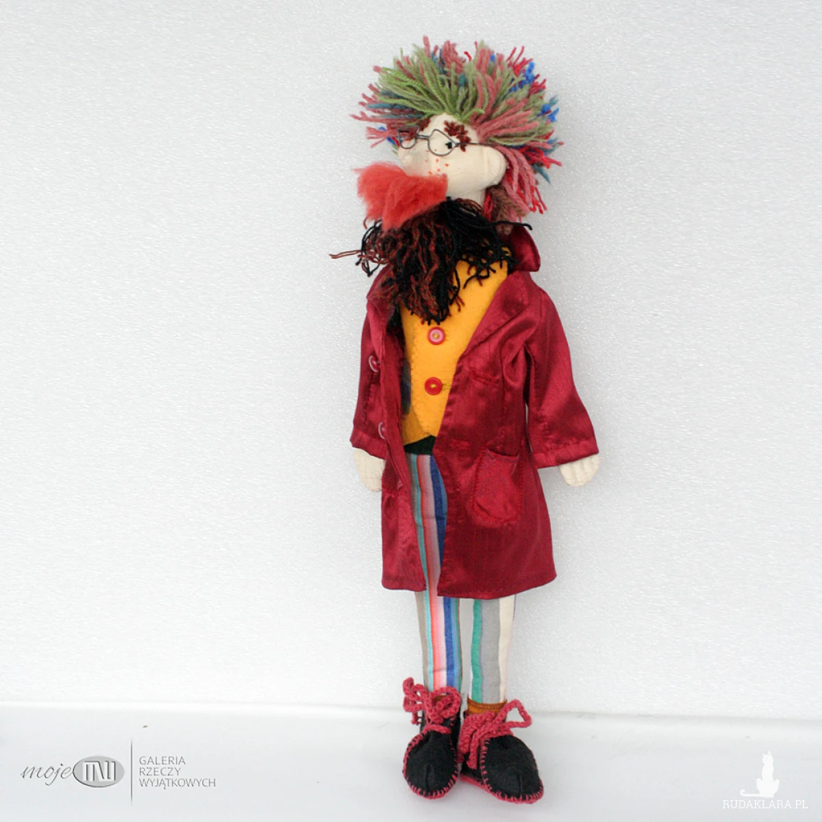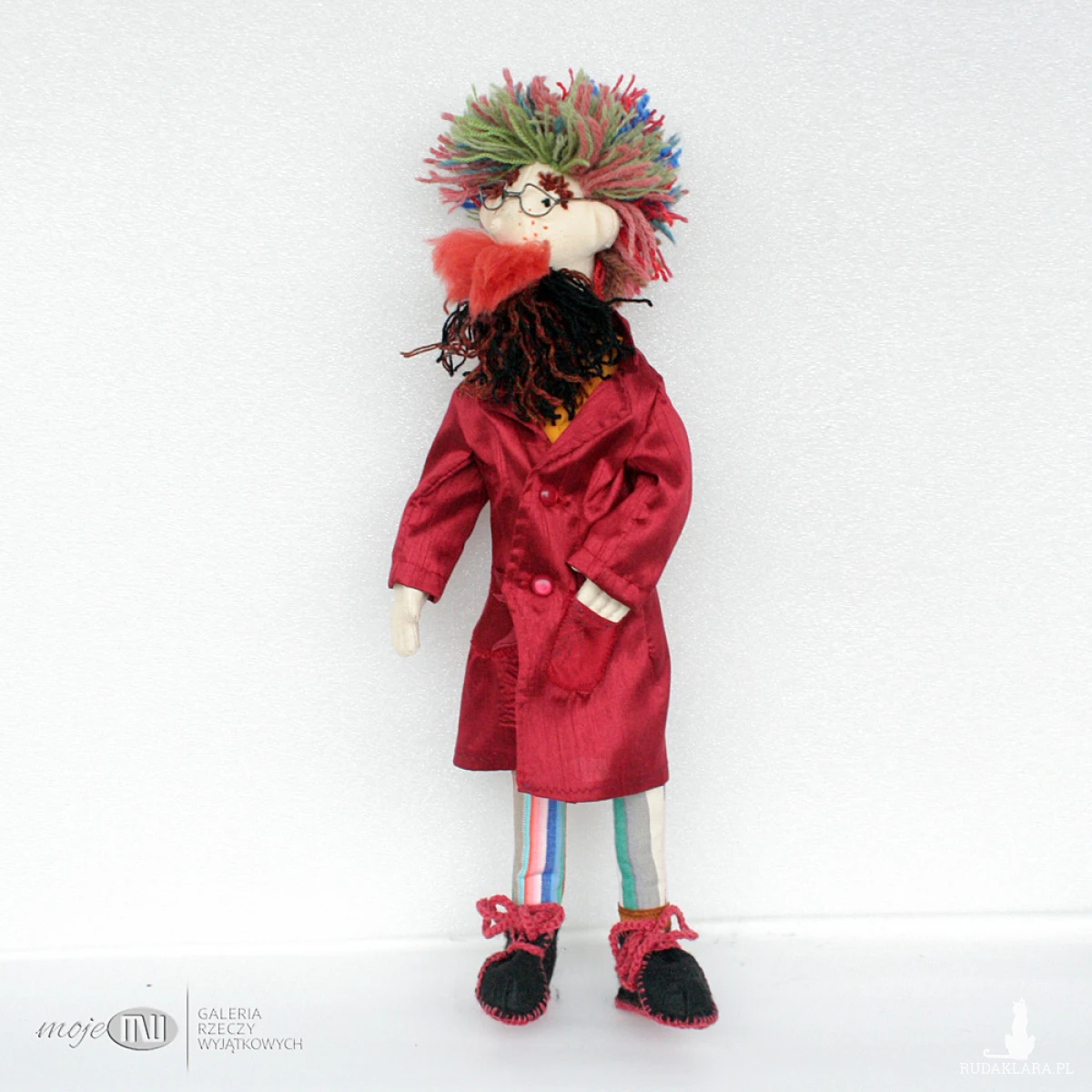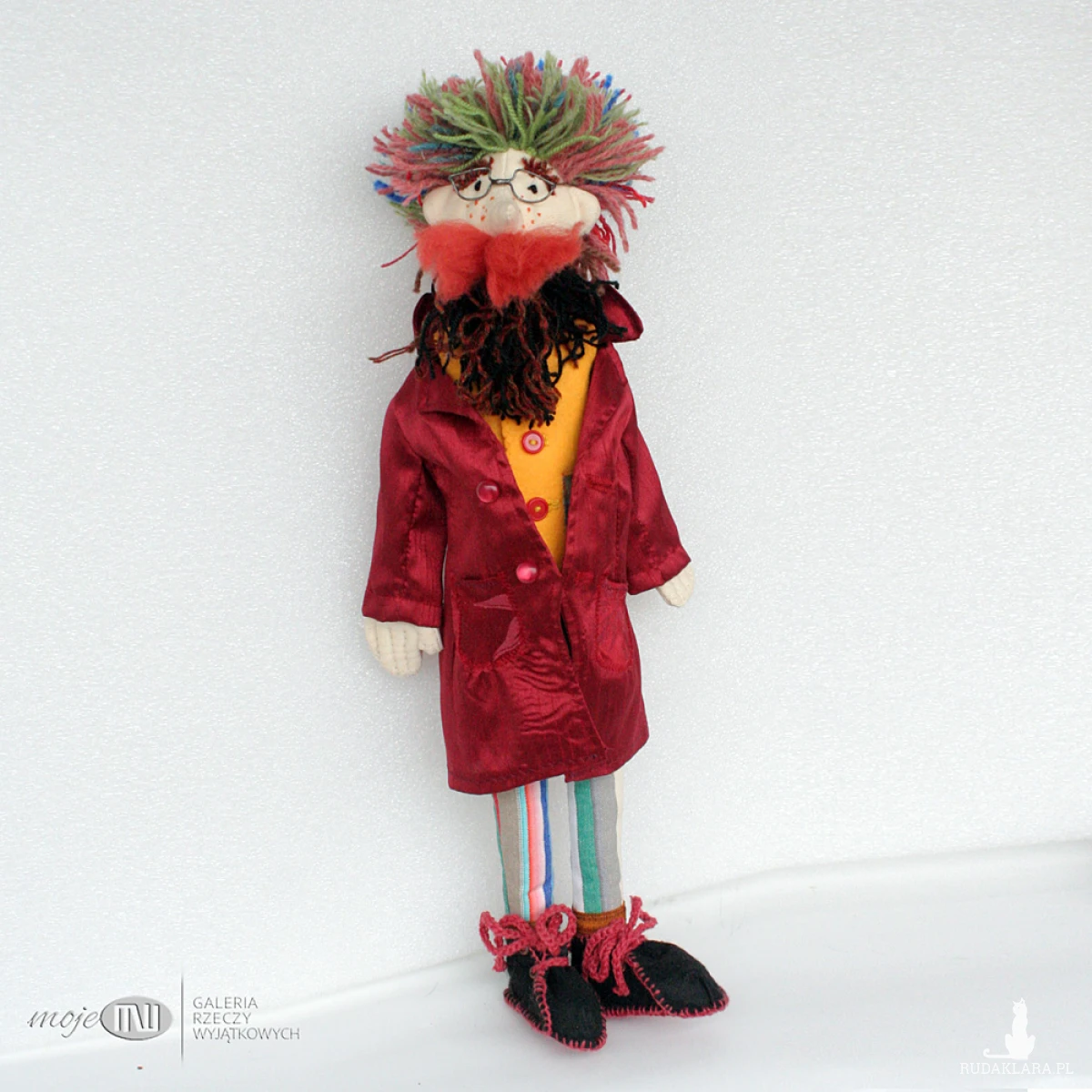 Ambroży Kleks - lalka szmaciana z różnych materiałów, m.in. bawełny, filcu i satyny. Włosy i brodę ma z wełnianej włóczki, wąsy z wełny czesankowej. Buty są z czarnego i czerwonego filcu, można je zdjąć, podobnie jak surdut i kamizelkę, która też jest filcowa. Wypełniony jest antyalergicznymi kulkami silikonowymi. Okulary są z miedzianego drutu pokrytego cyną.