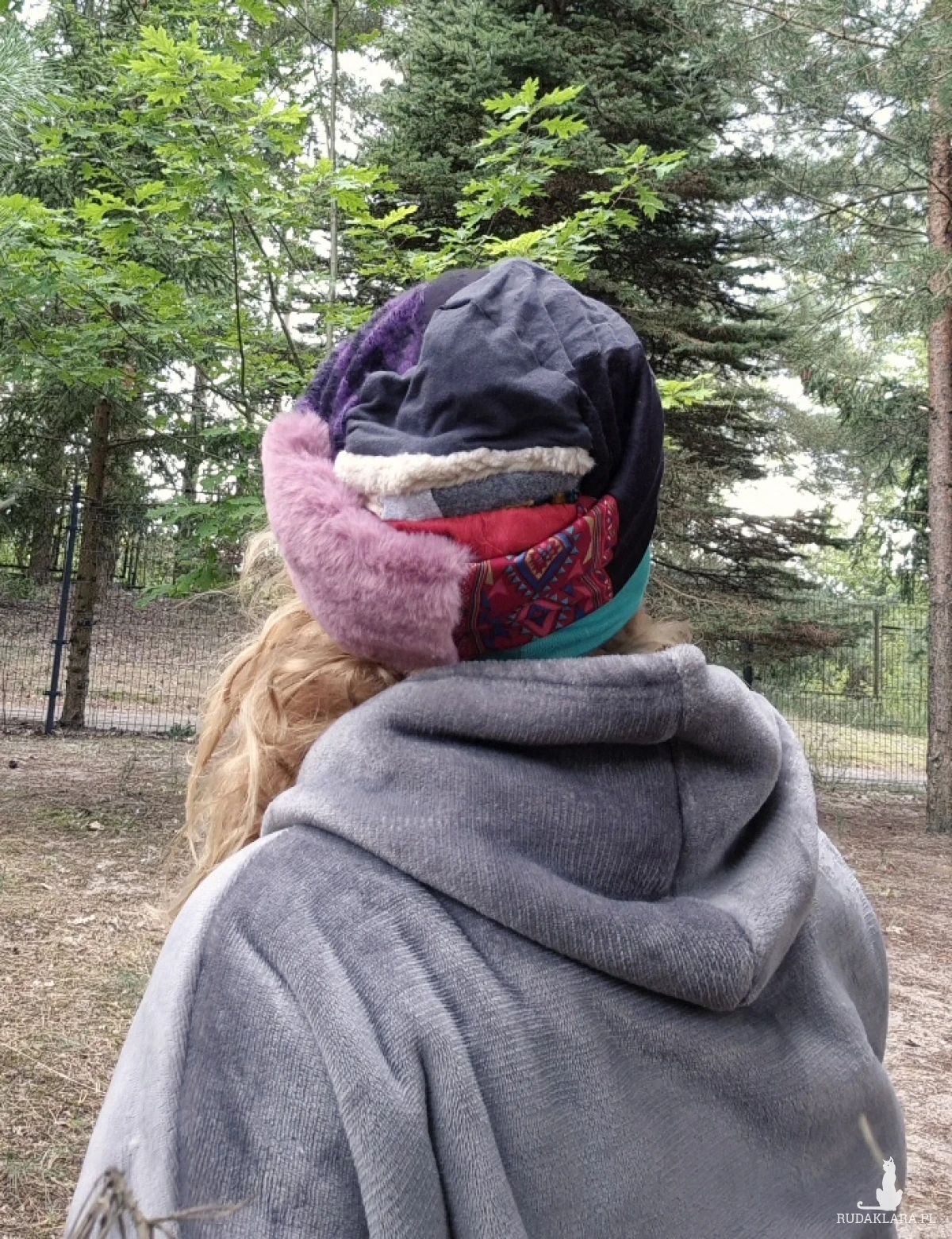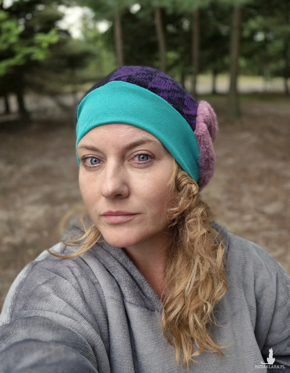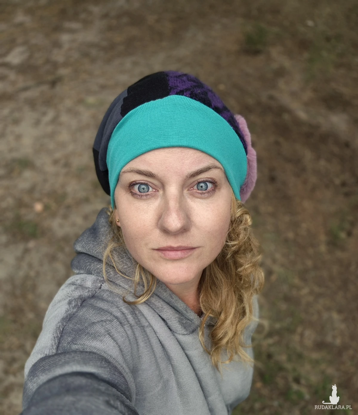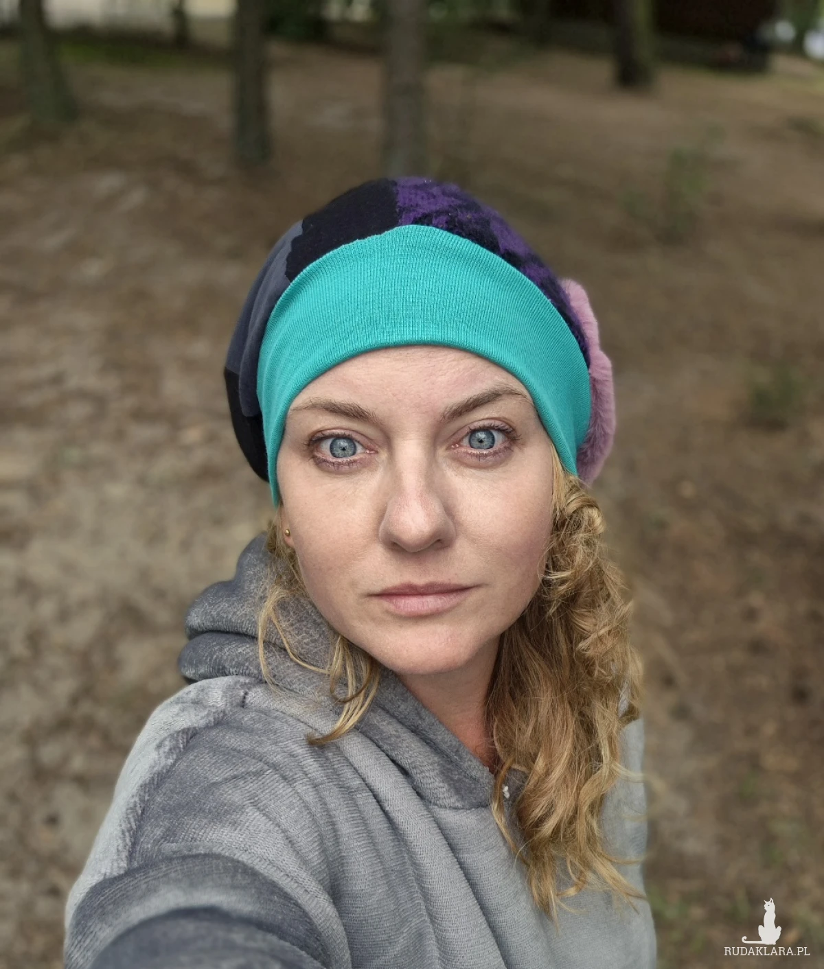 Czapka patchworkowa codzienna rozmiar uniwersalny na podszewce, miła i ciepła można stworzyć z niej taki turbanowy kształt środek czapki podwijając polecam pojedyncza sztuka box a1